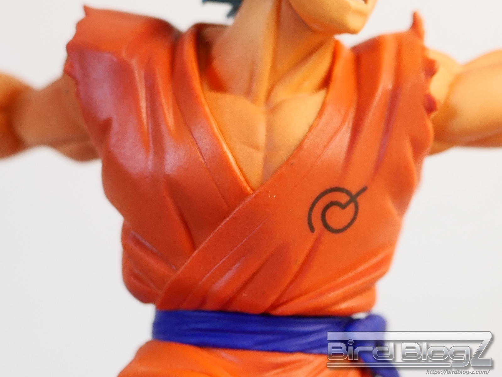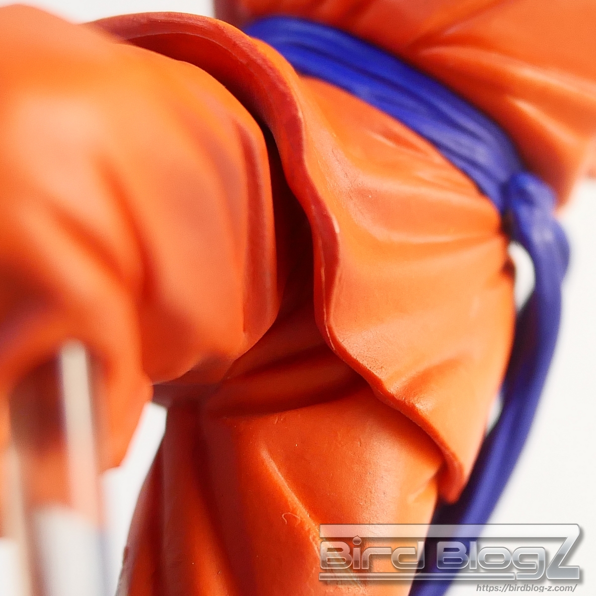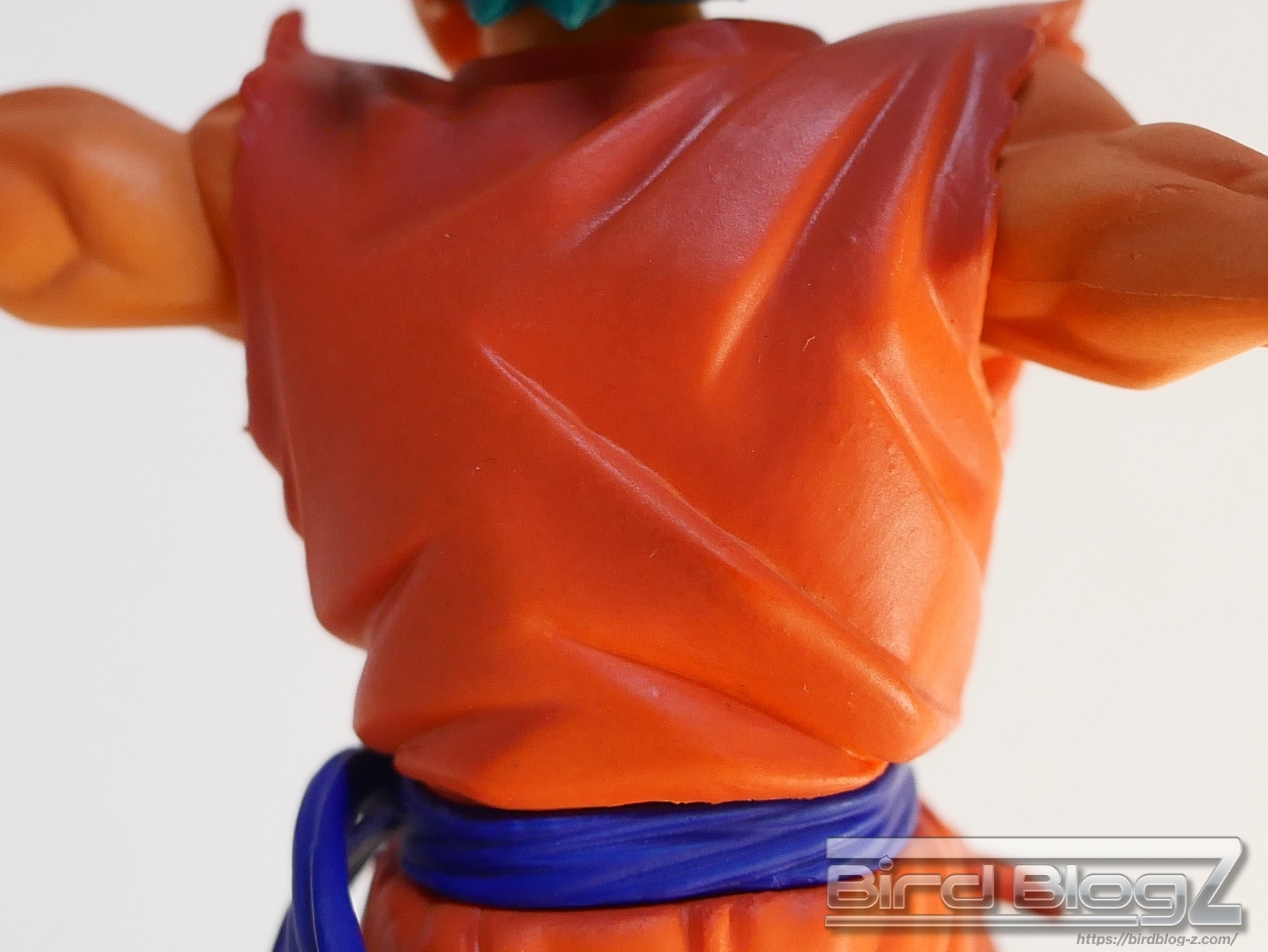 勢いよく地面を蹴り上げて立ち向かう姿は力強く感じます。ジオラマ台座は砕ける地面に塗装が吹きつけがあります。唇と歯茎が離れて表情に違和感を感じます。本体サイズは小さいですが、指先や道着の破れなど細かく造形されています。