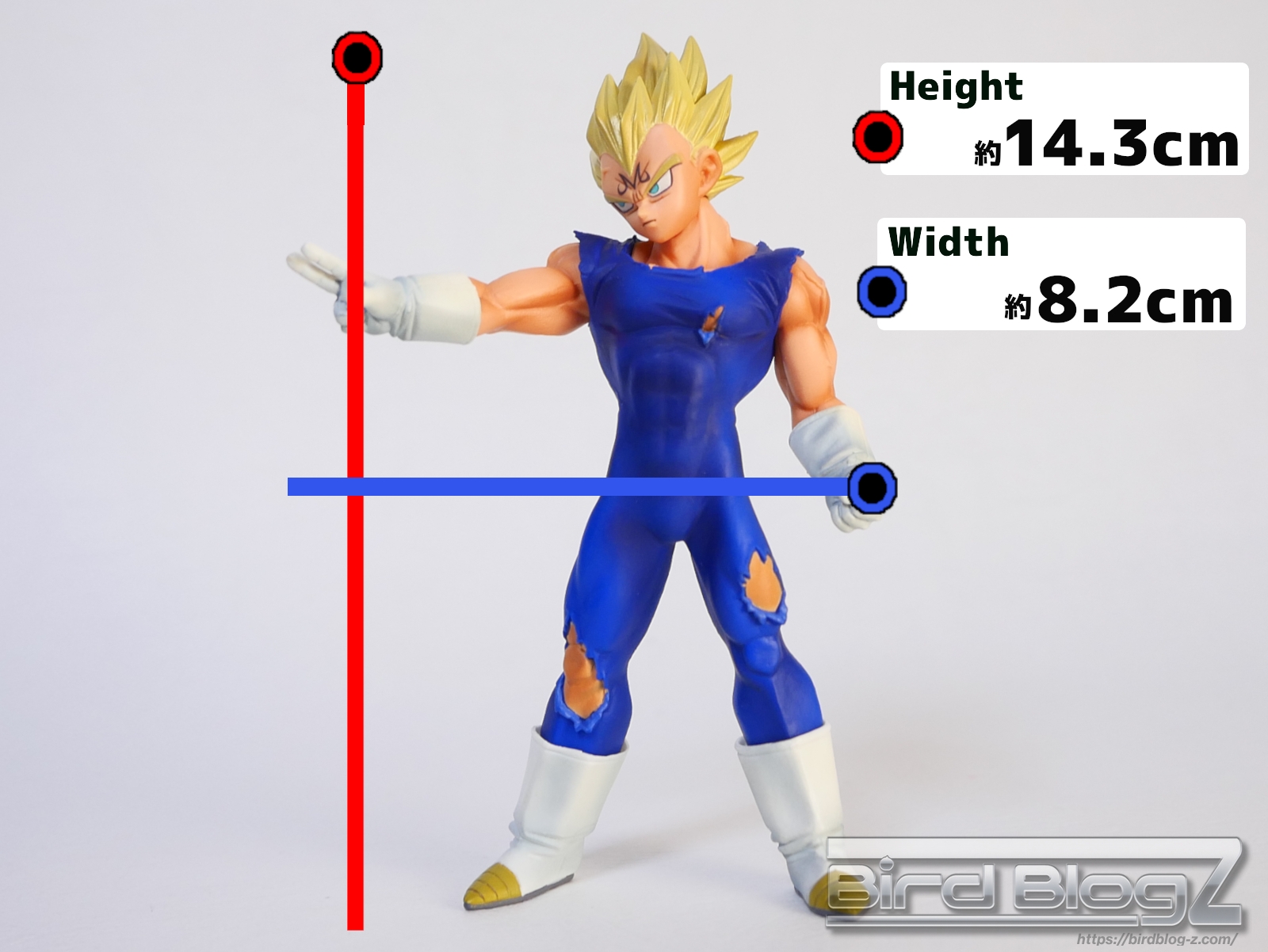魔人ブウ編の激闘編でアトミックブラストを放つポーズの魔人ベジータの程よいサイズのフィギュア。MASTERLISEサイズを好まれる方には物足りないサイズ感です。