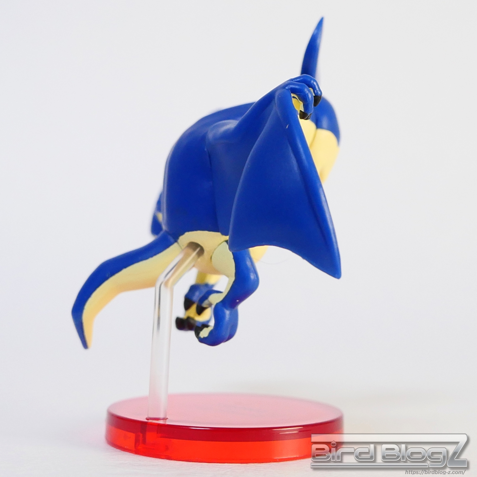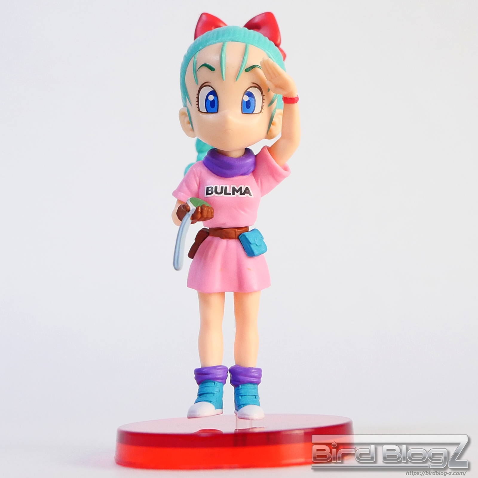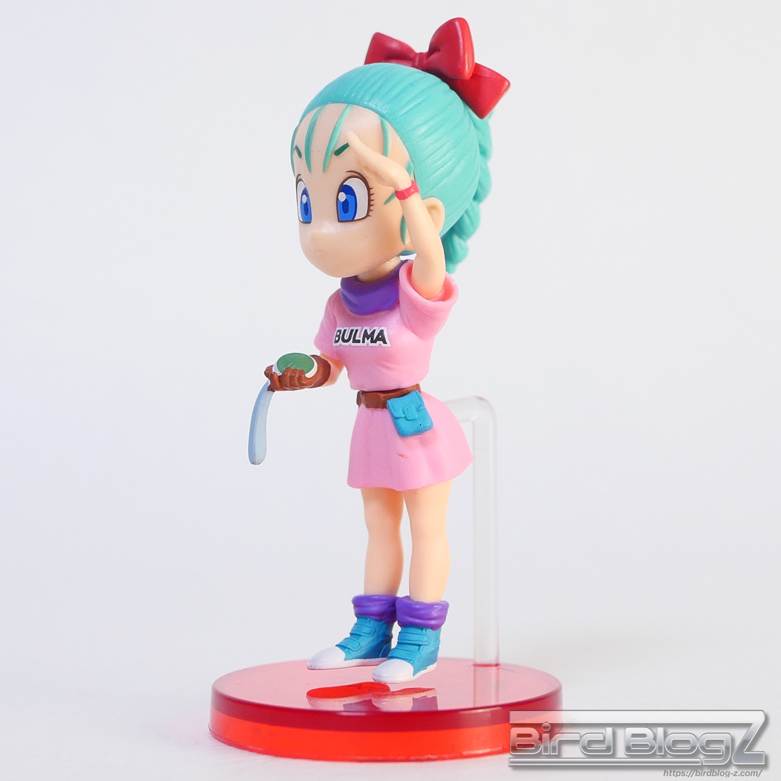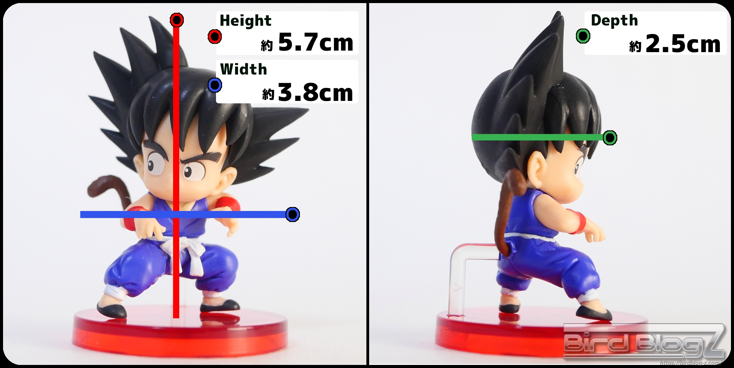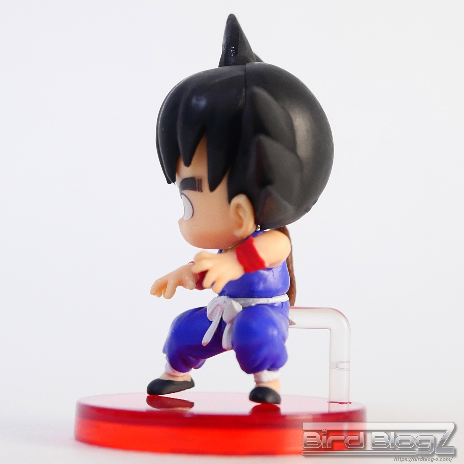 「む~むんむん・・・・・・・・・・」と薪割り前の構えポーズが造形。青紫の初期道着衣服が着用。道着の尻尾箇所は破れ造形があります。手、足を短くディフォルメされてかわいいです。