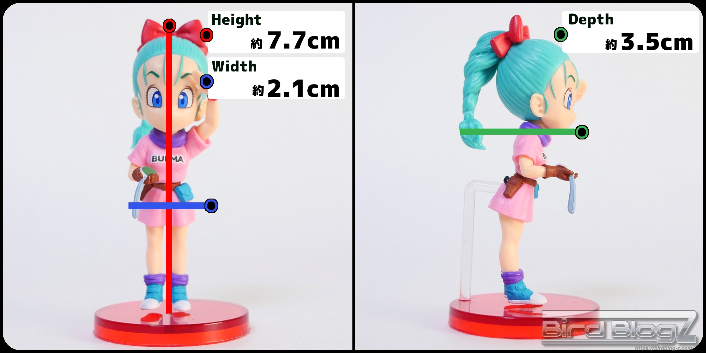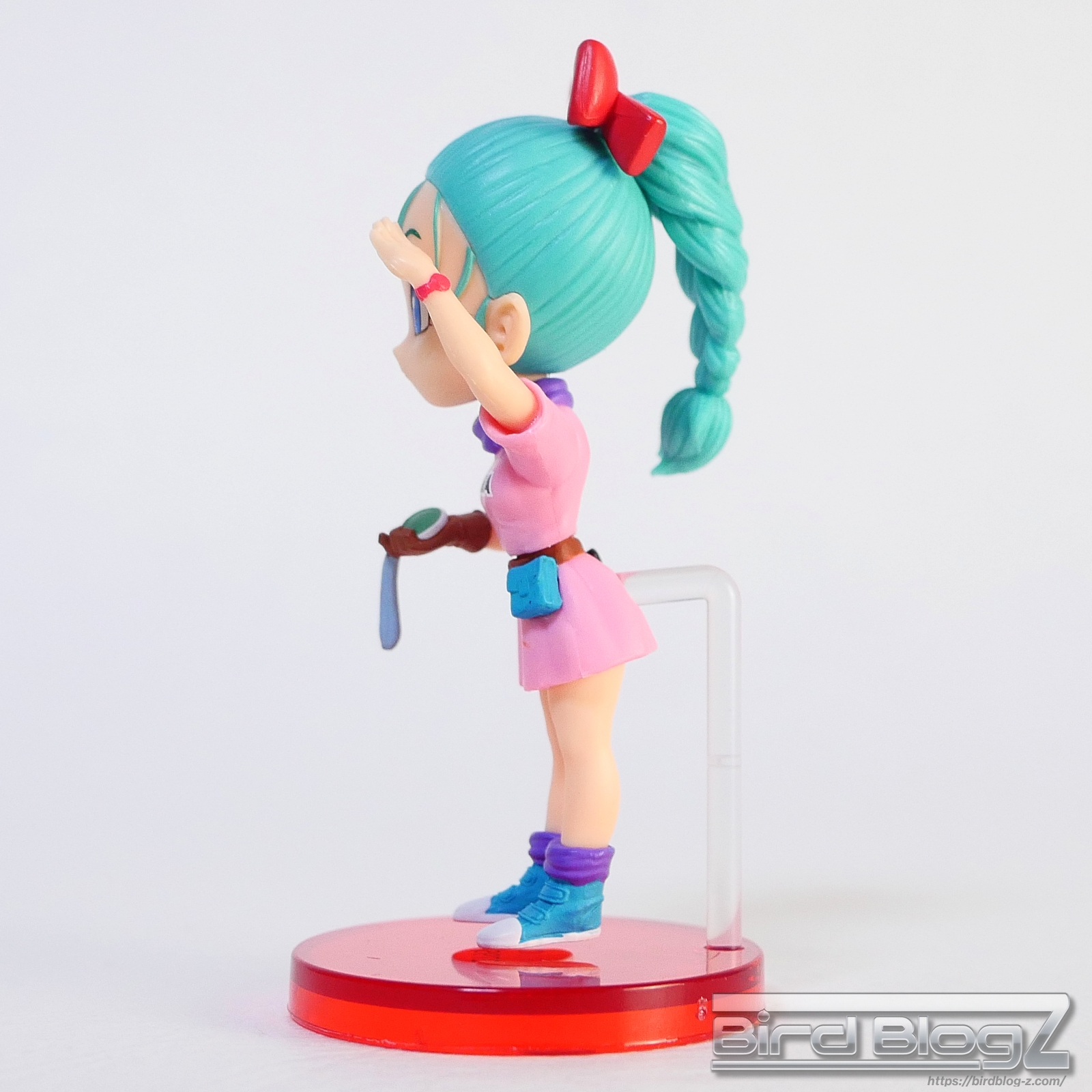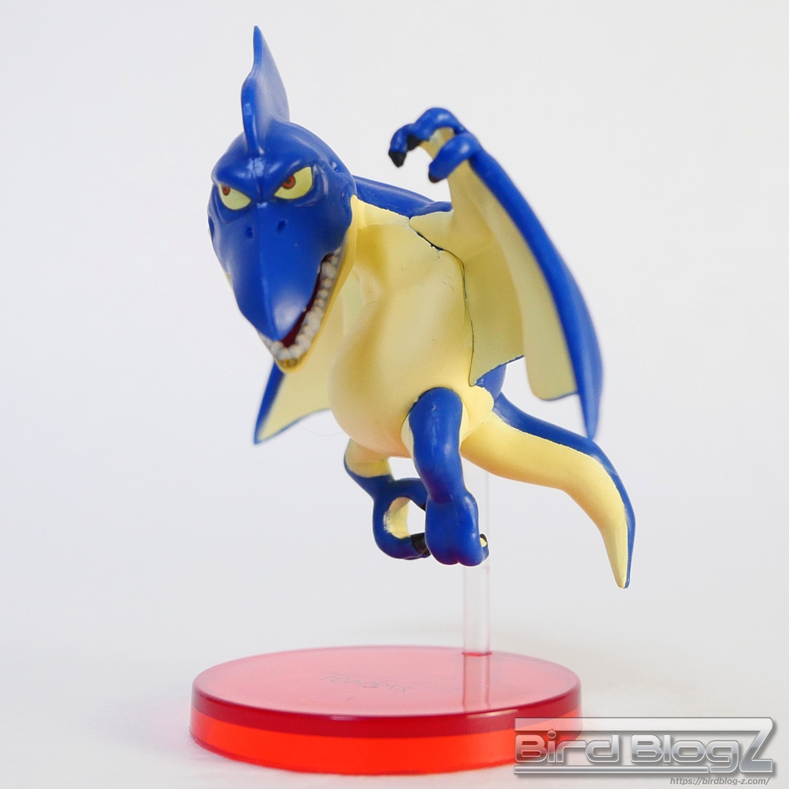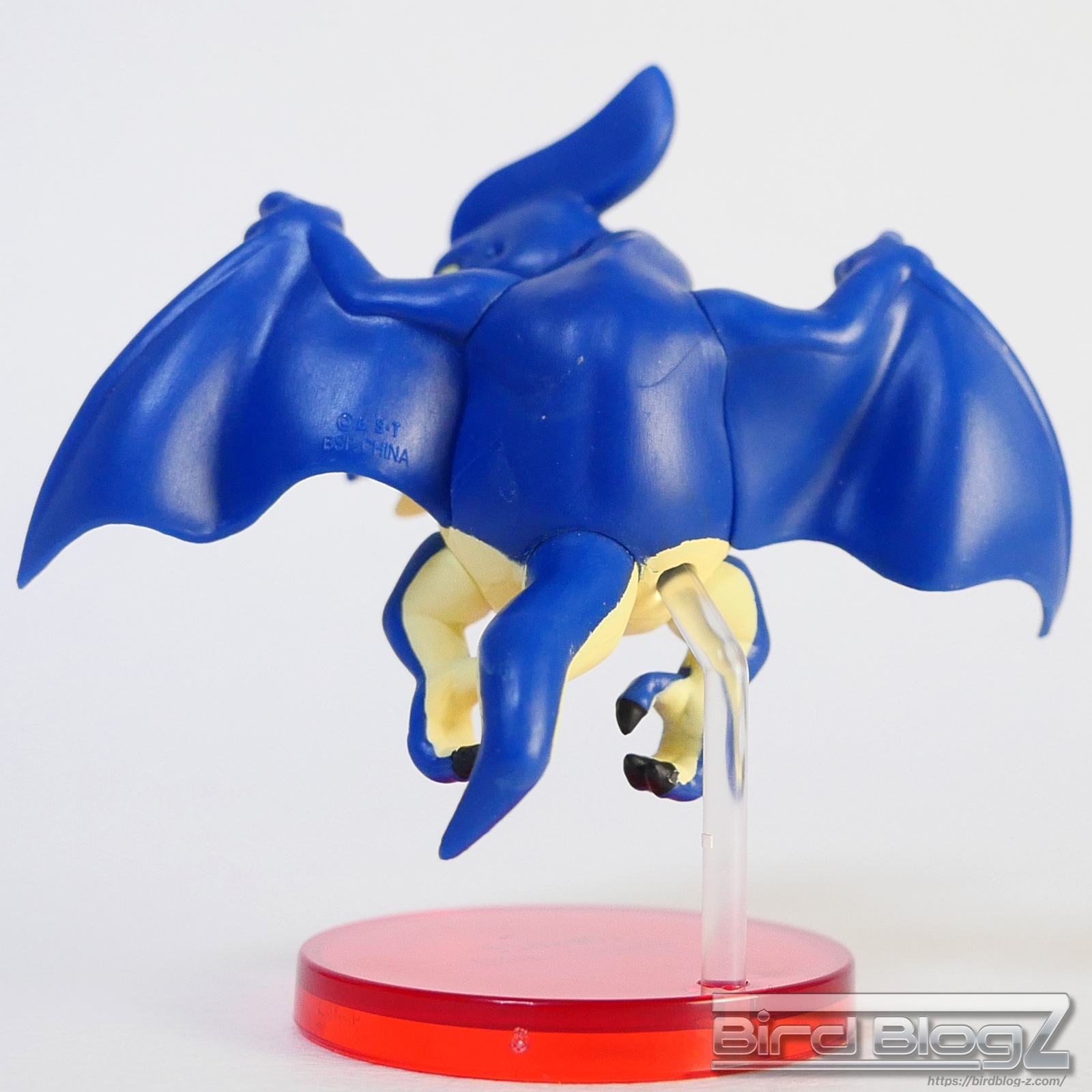 「む~むんむん・・・・・・・・・・」と薪割り前の構えポーズが造形。青紫の初期道着衣服が着用。道着の尻尾箇所は破れ造形があります。手、足を短くディフォルメされてかわいいです。