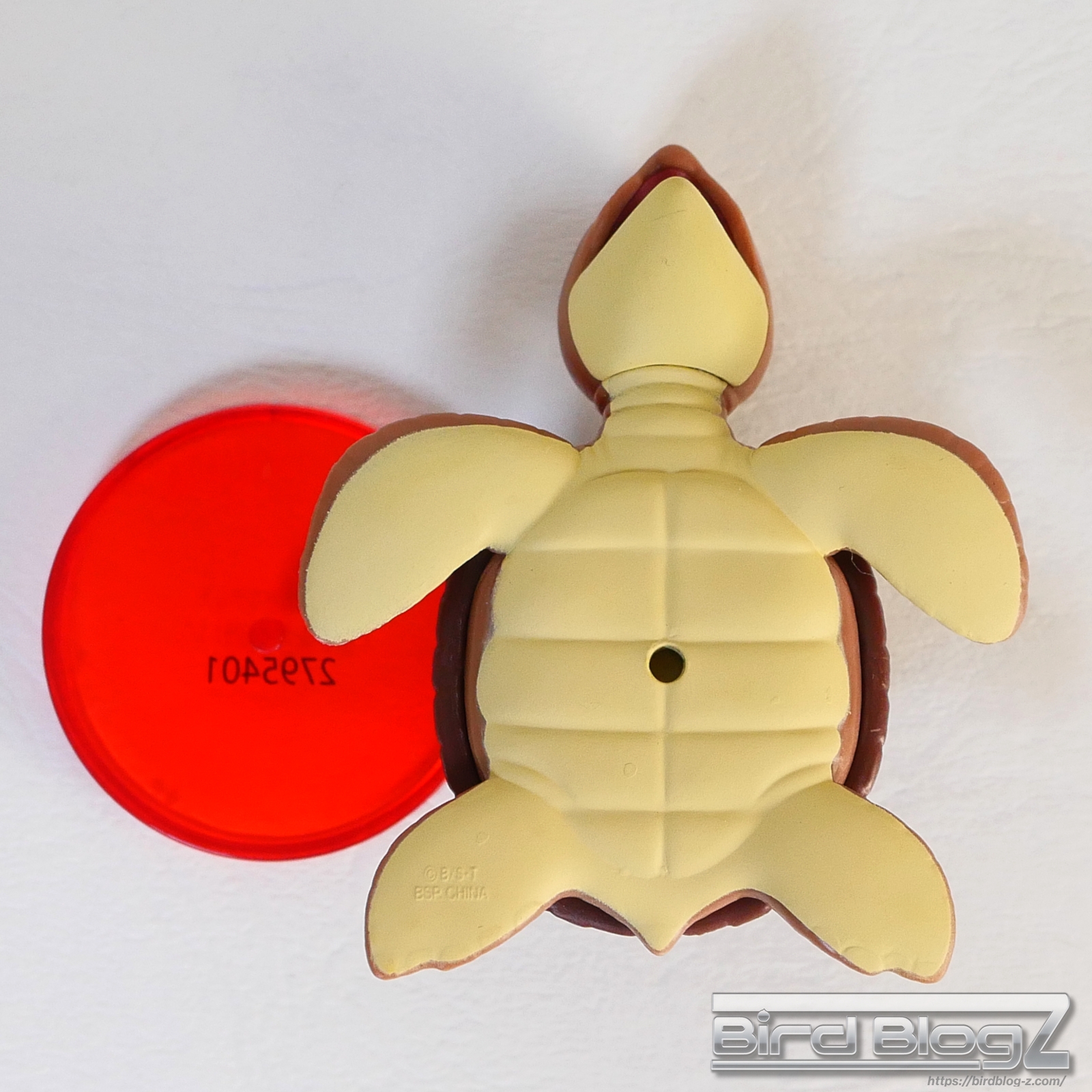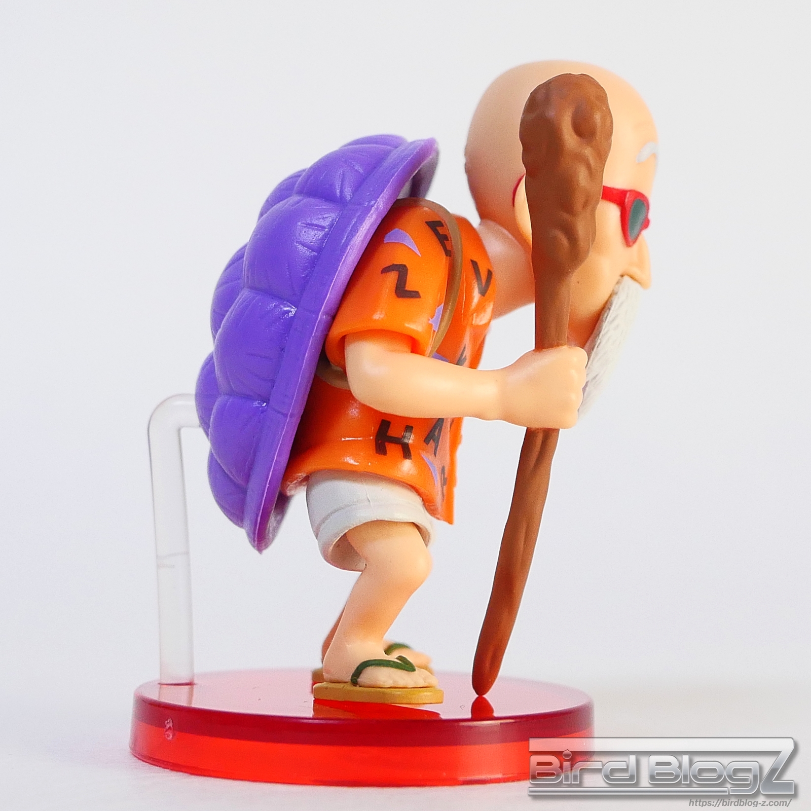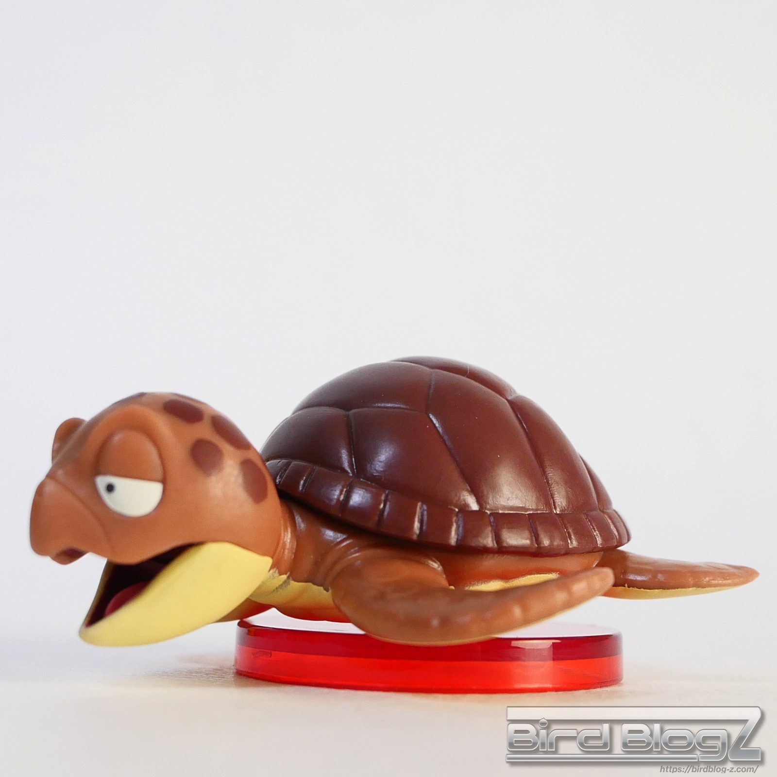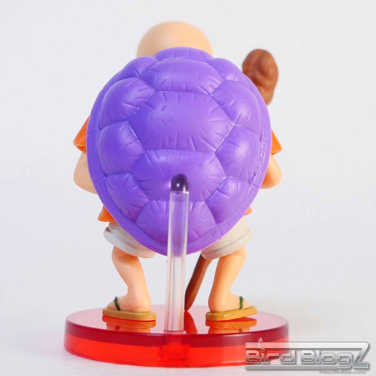 「おまたせしました!!」と亀仙人を甲羅に乗せて海を泳いできたウミガメを再現。甲羅の中に身体を隠せるようになしわが造形されています。台座と安定できるようにダボ穴があります。身体の裏側も造形されています。