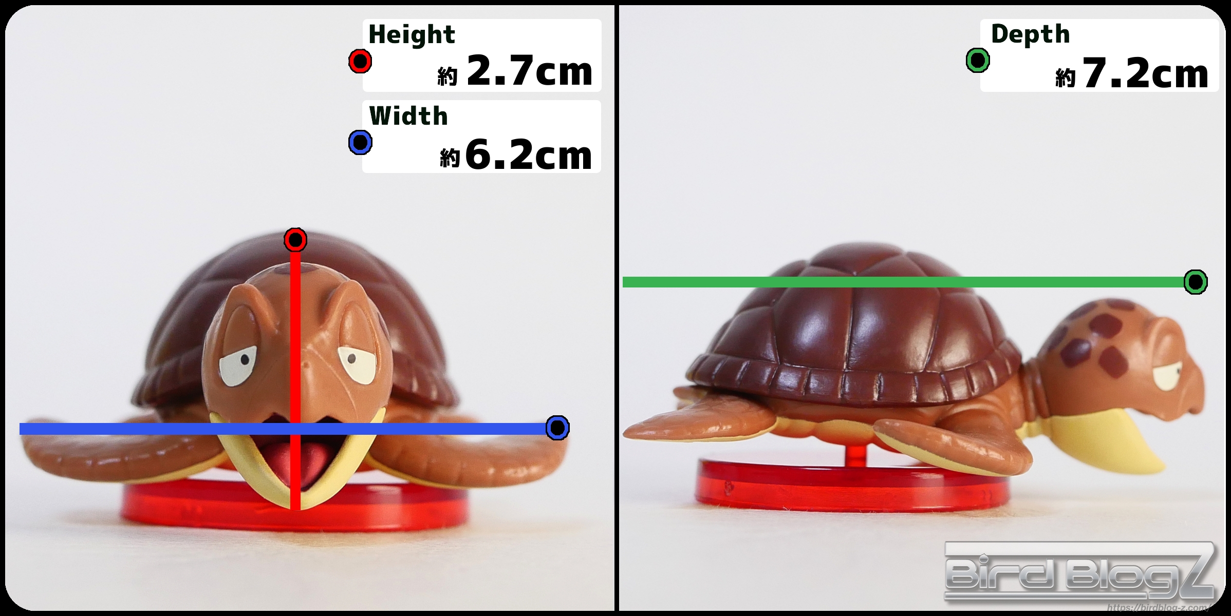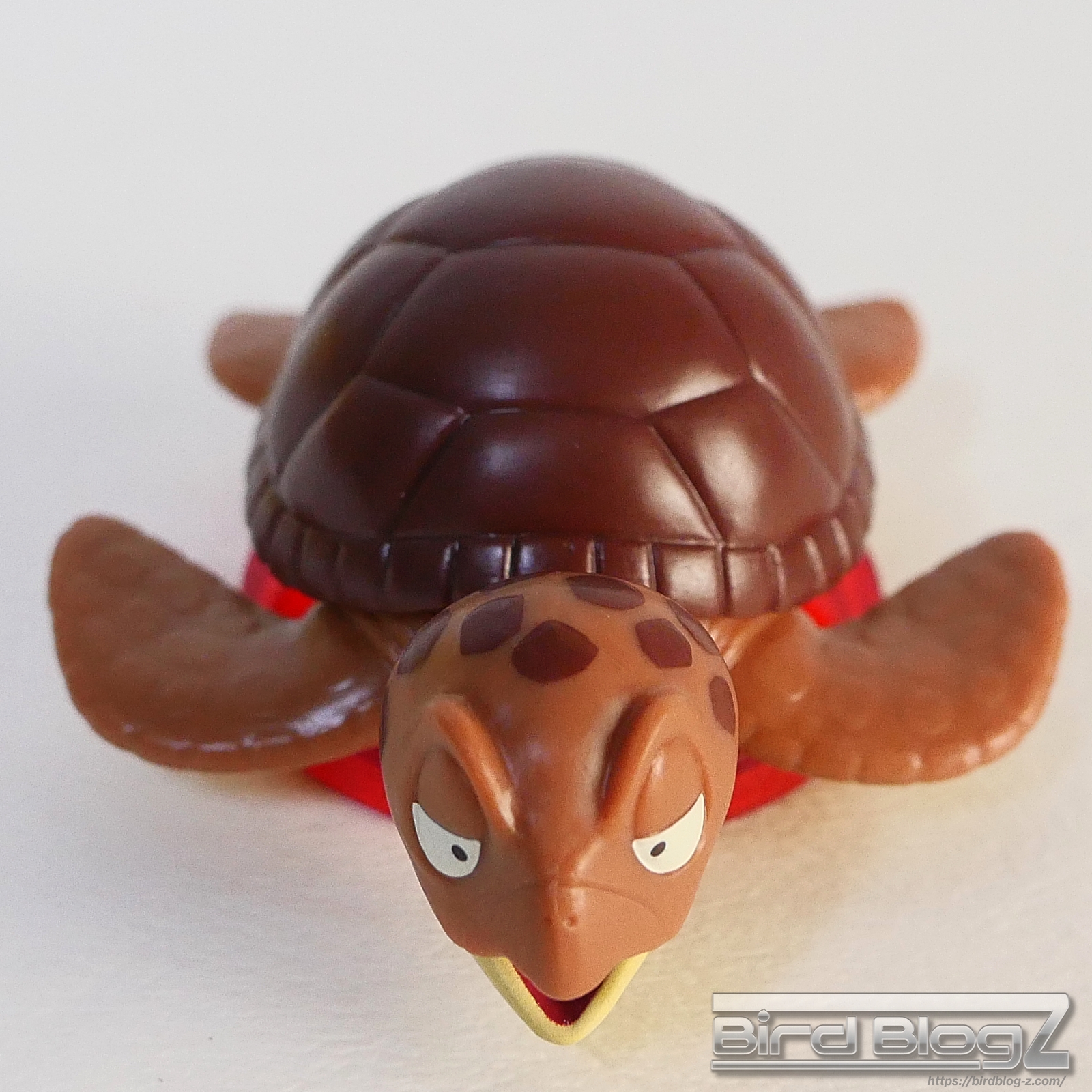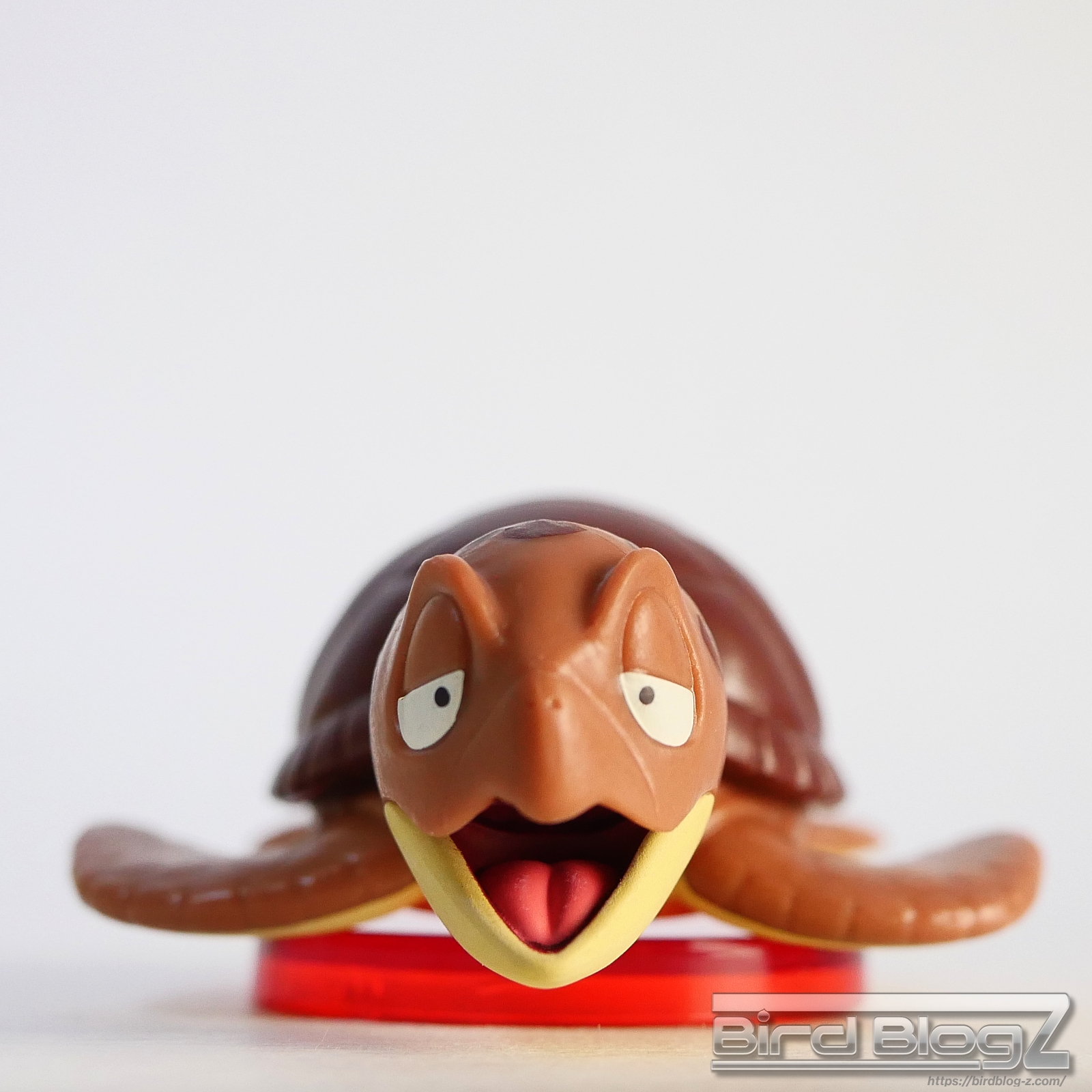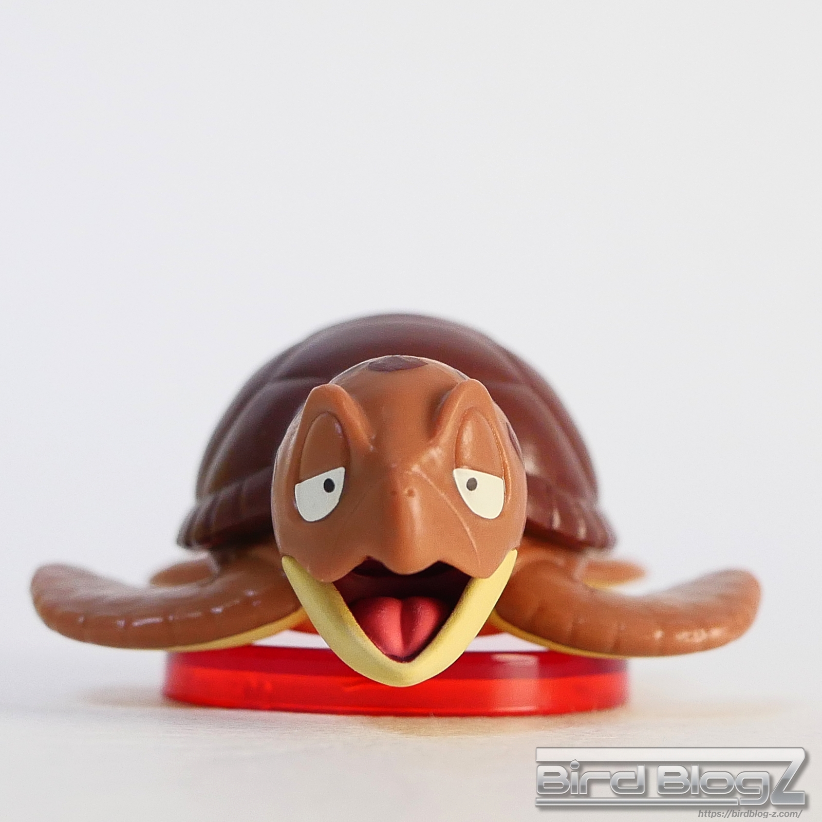「おまたせしました!!」と亀仙人を甲羅に乗せて海を泳いできたウミガメを再現。甲羅の中に身体を隠せるようになしわが造形されています。台座と安定できるようにダボ穴があります。身体の裏側も造形されています。