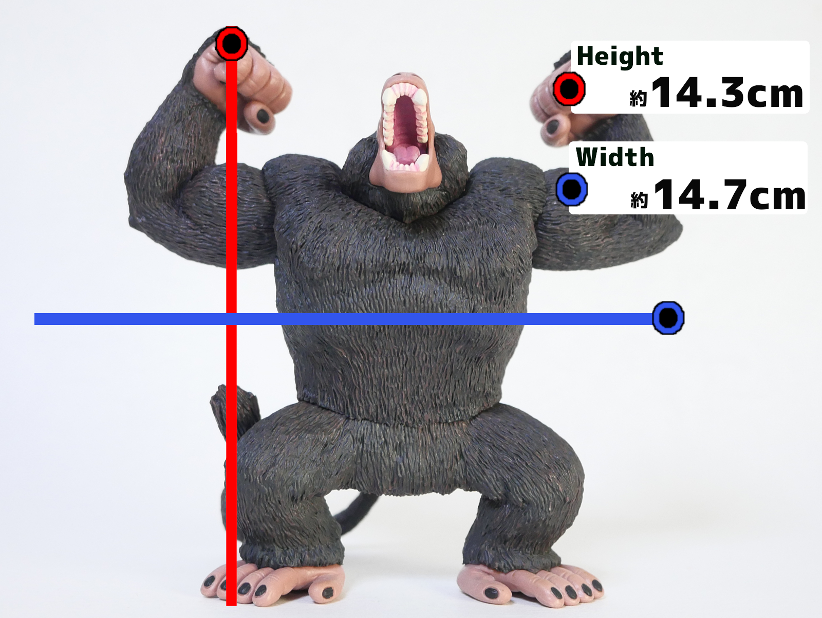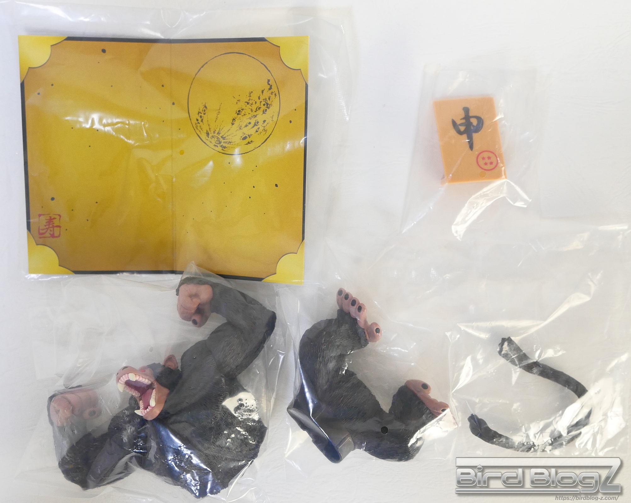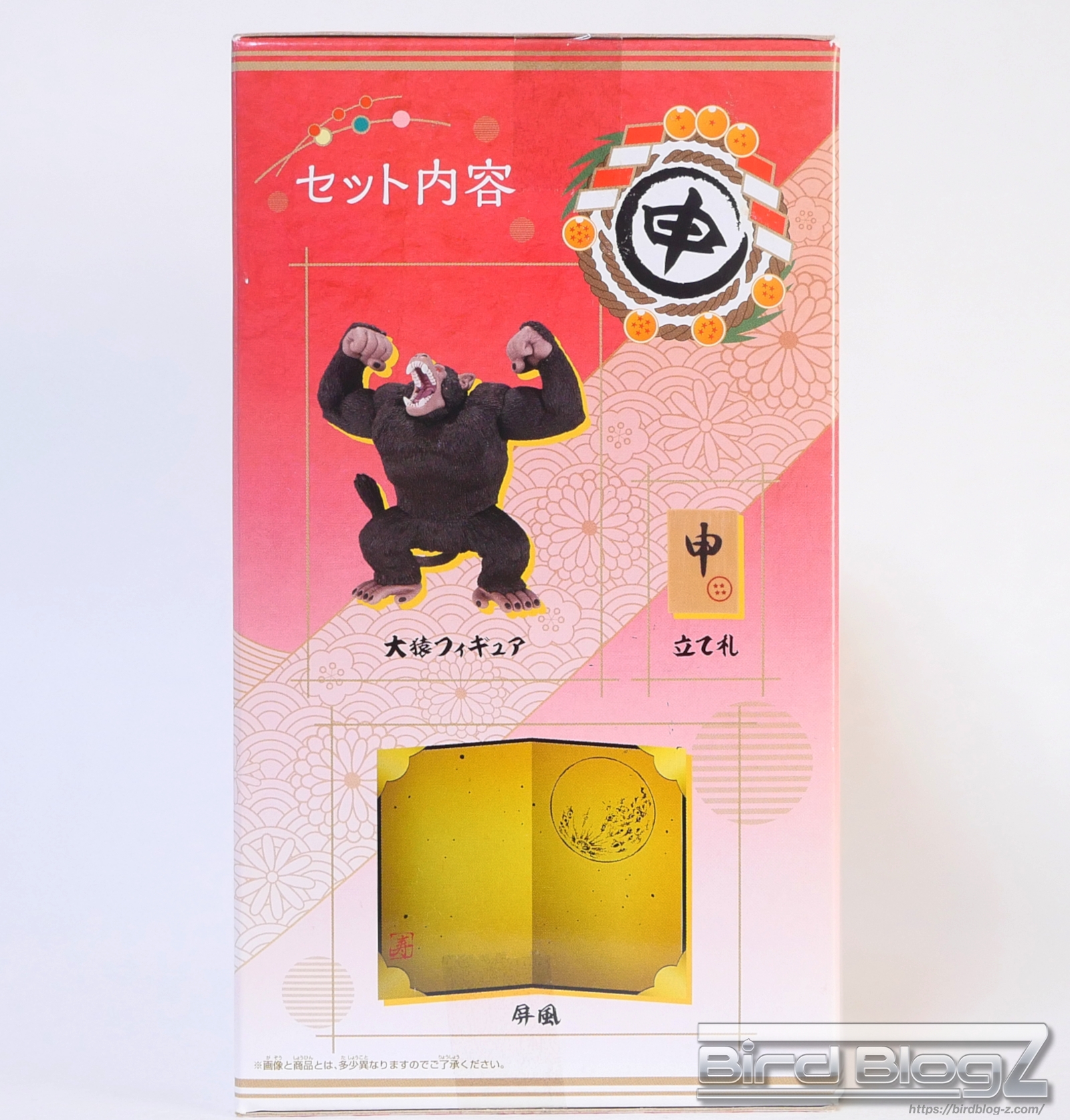 四つん這いで咆哮するスタイルで、安定感は抜群です。台座なしでも自立します。木の質感を感じさせるモールド入った立て札は「申」と書かれいます。金色の屏風は「満月」が描かれており、大猿の世界観が出ています。お正月らしい「縁起物」の雰囲気が出ます。