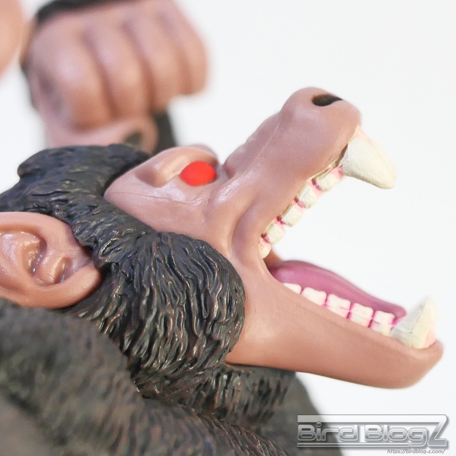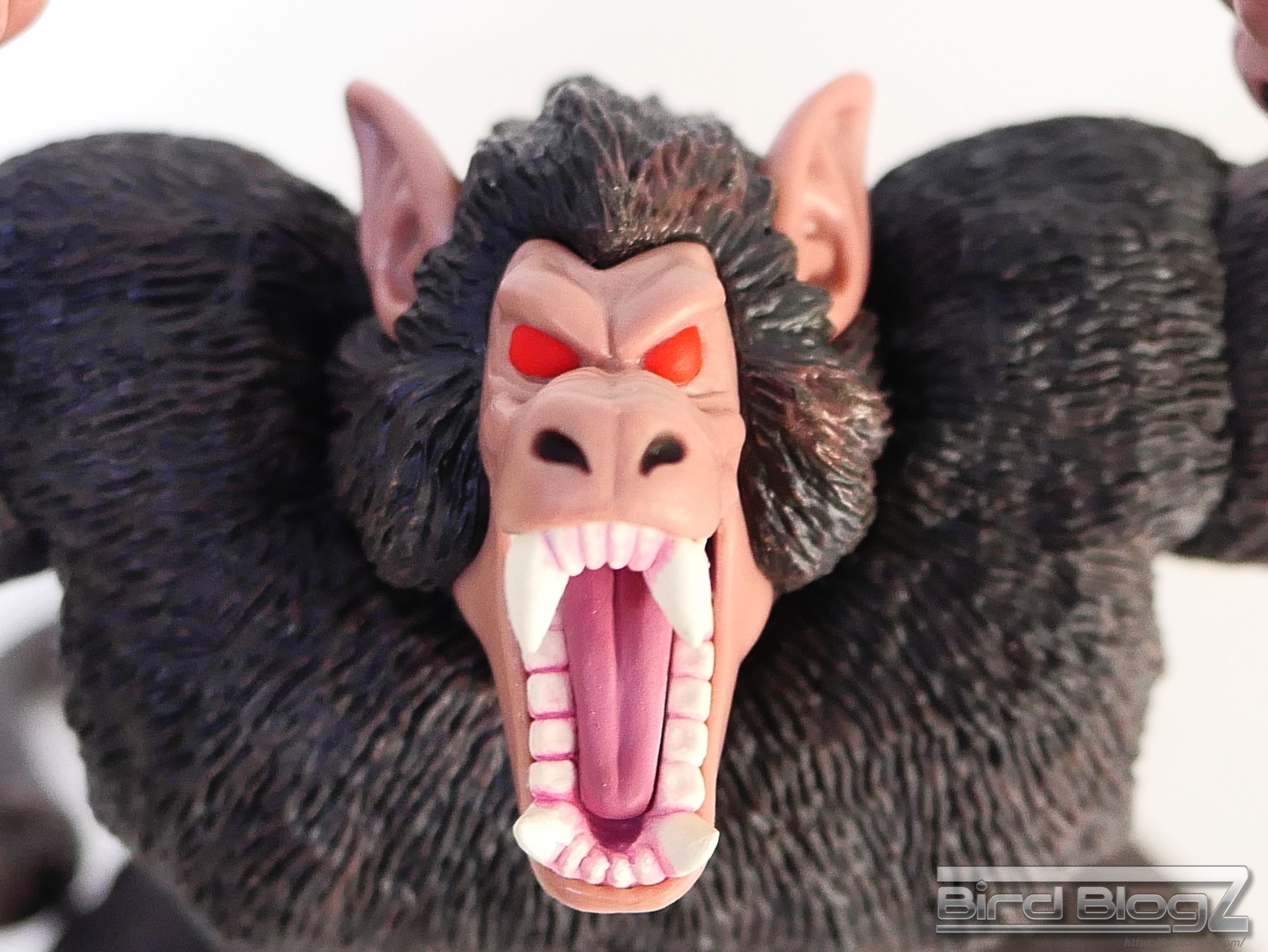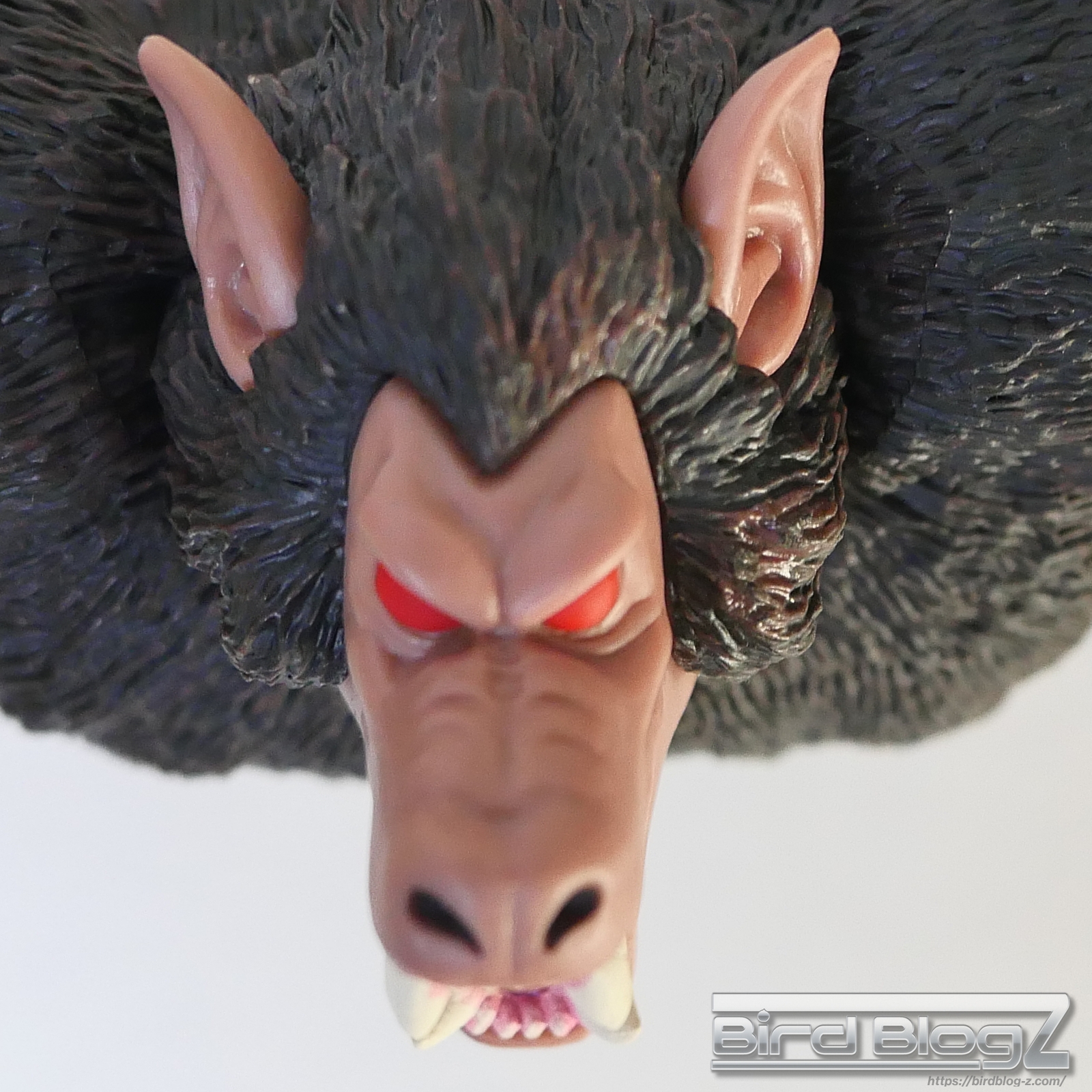 顎を上げて上空に首を上げて咆哮を上げる表情。口を大きく開け、牙がしっかりと再現された迫力あります。顔つきはややシャープで、悟飯が大猿化したような表情です。