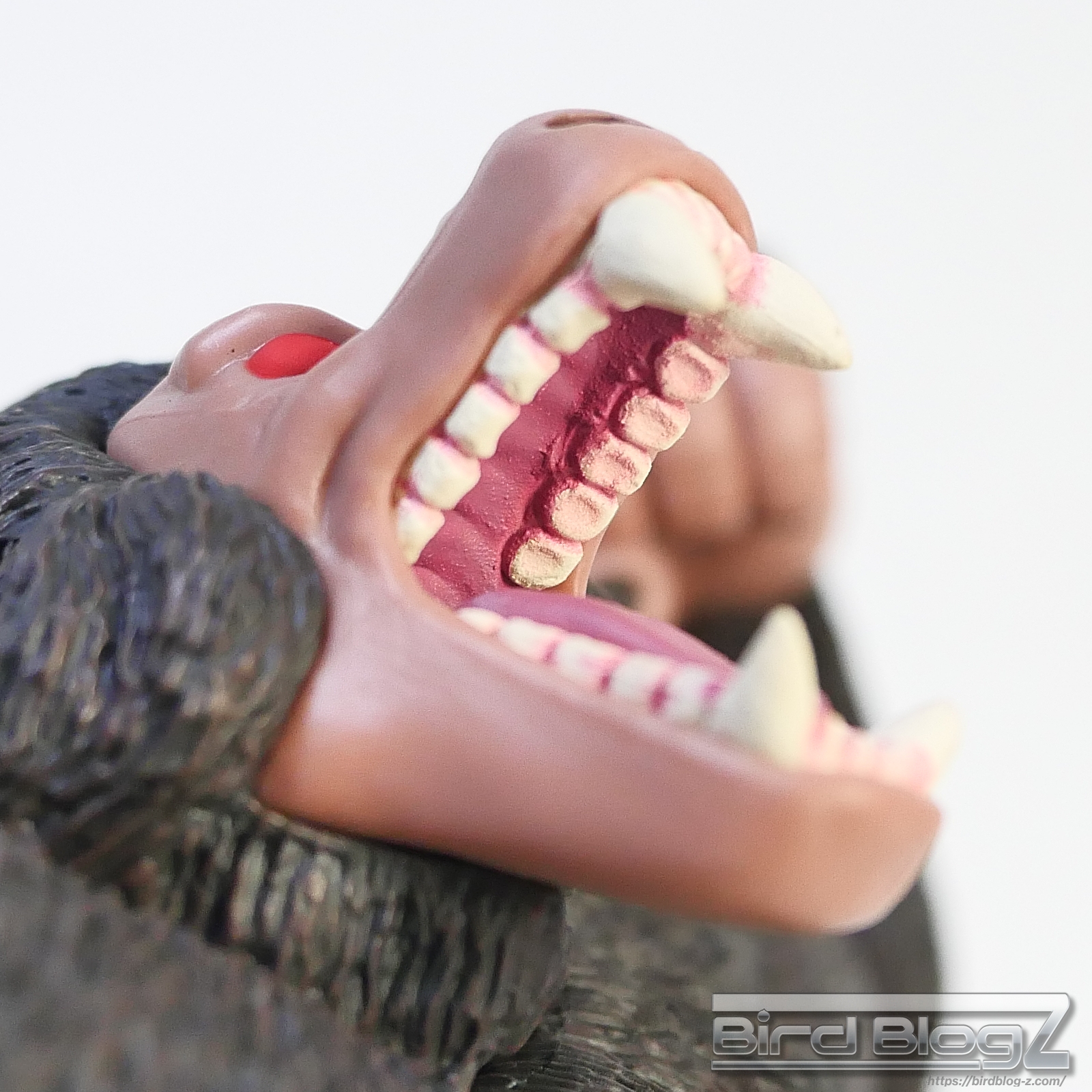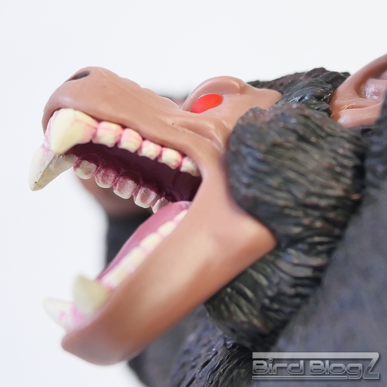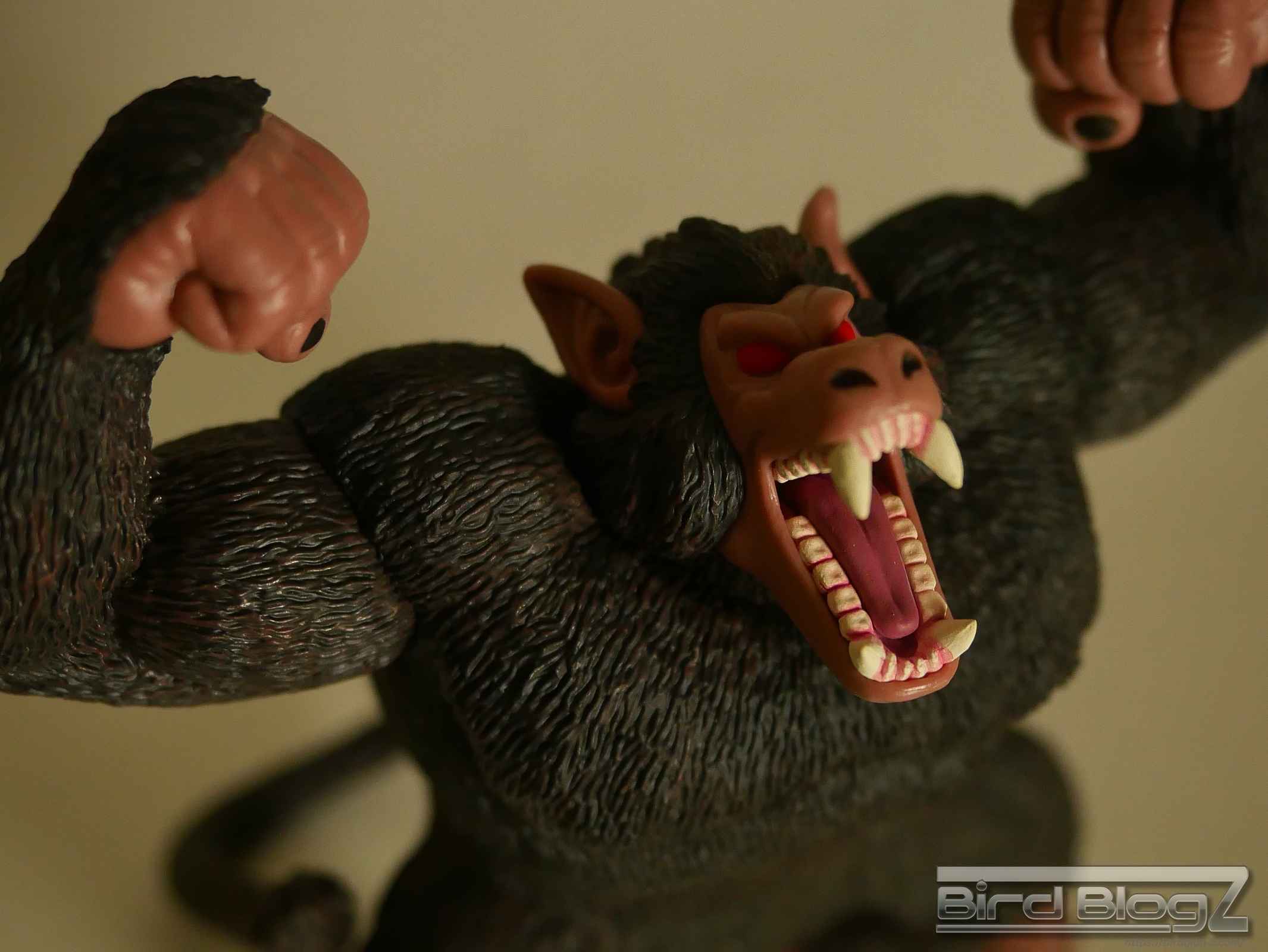 顎を上げて上空に首を上げて咆哮を上げる表情。口を大きく開け、牙がしっかりと再現された迫力あります。顔つきはややシャープで、悟飯が大猿化したような表情です。