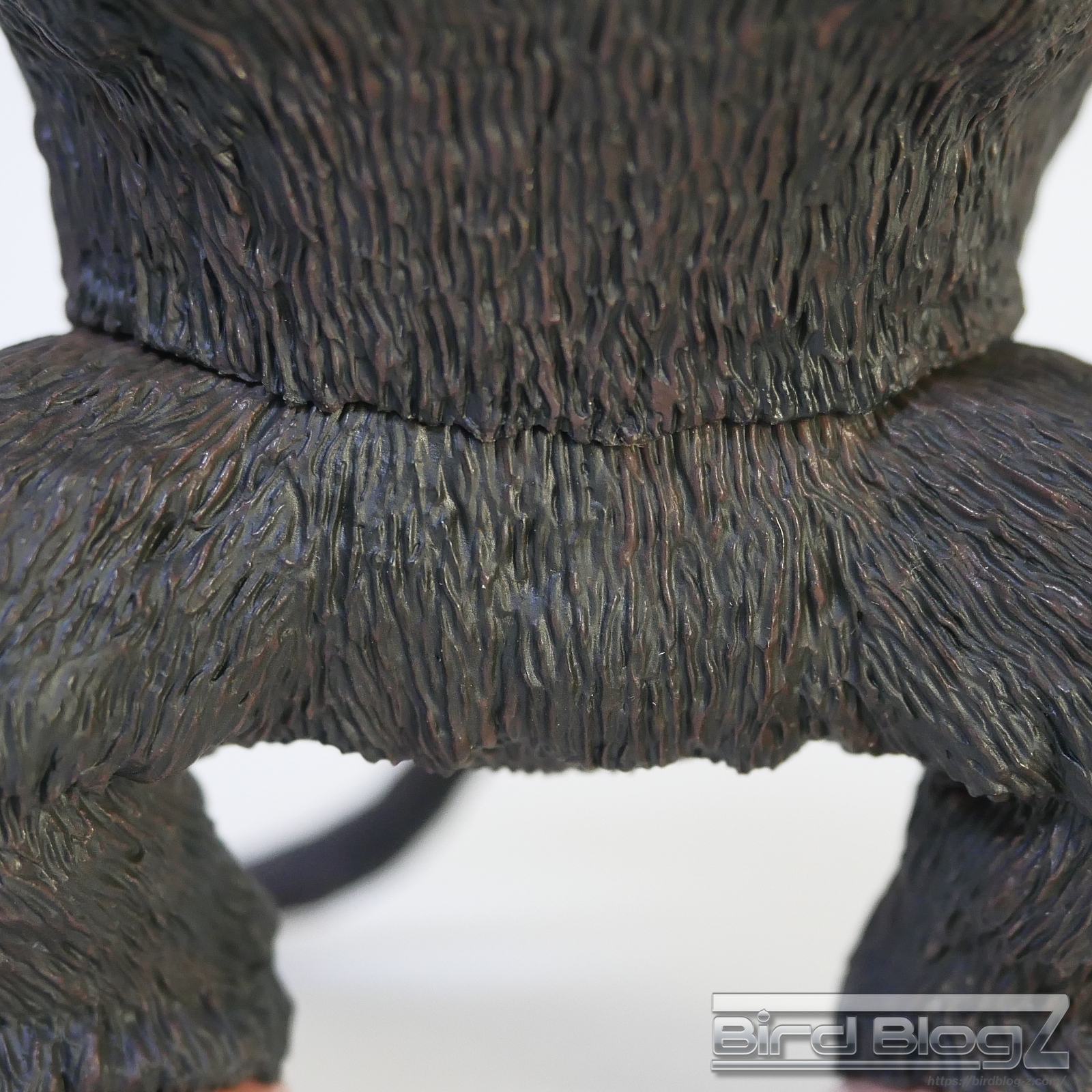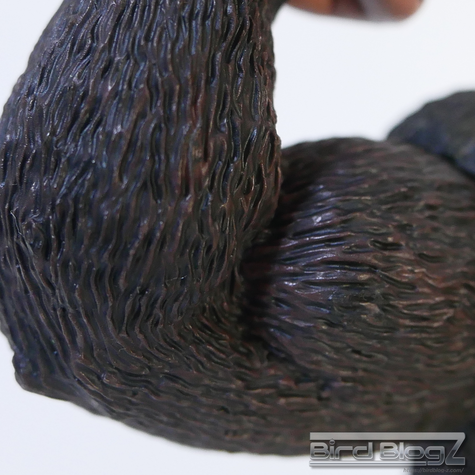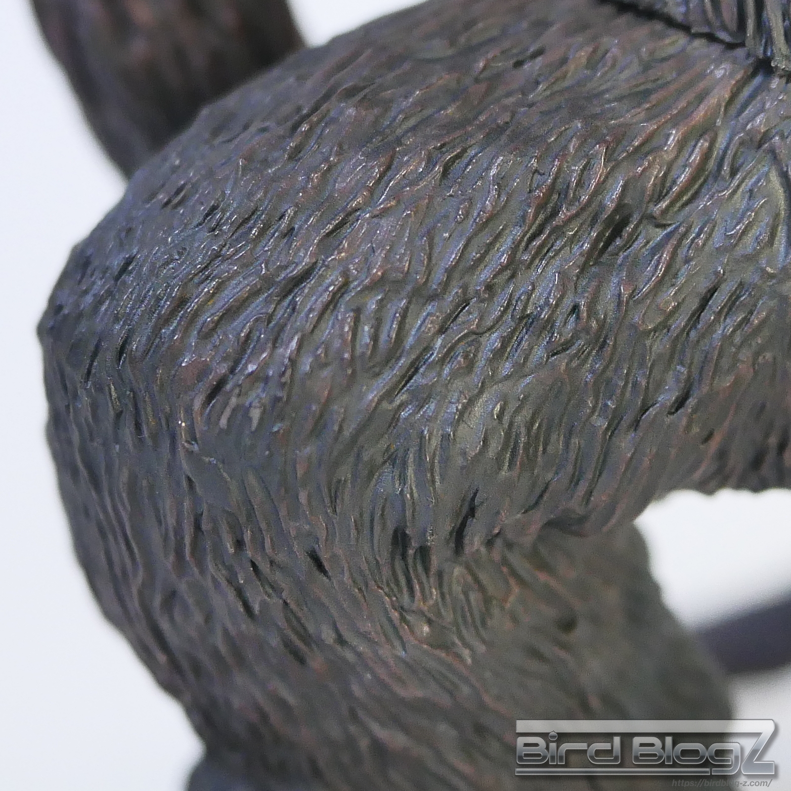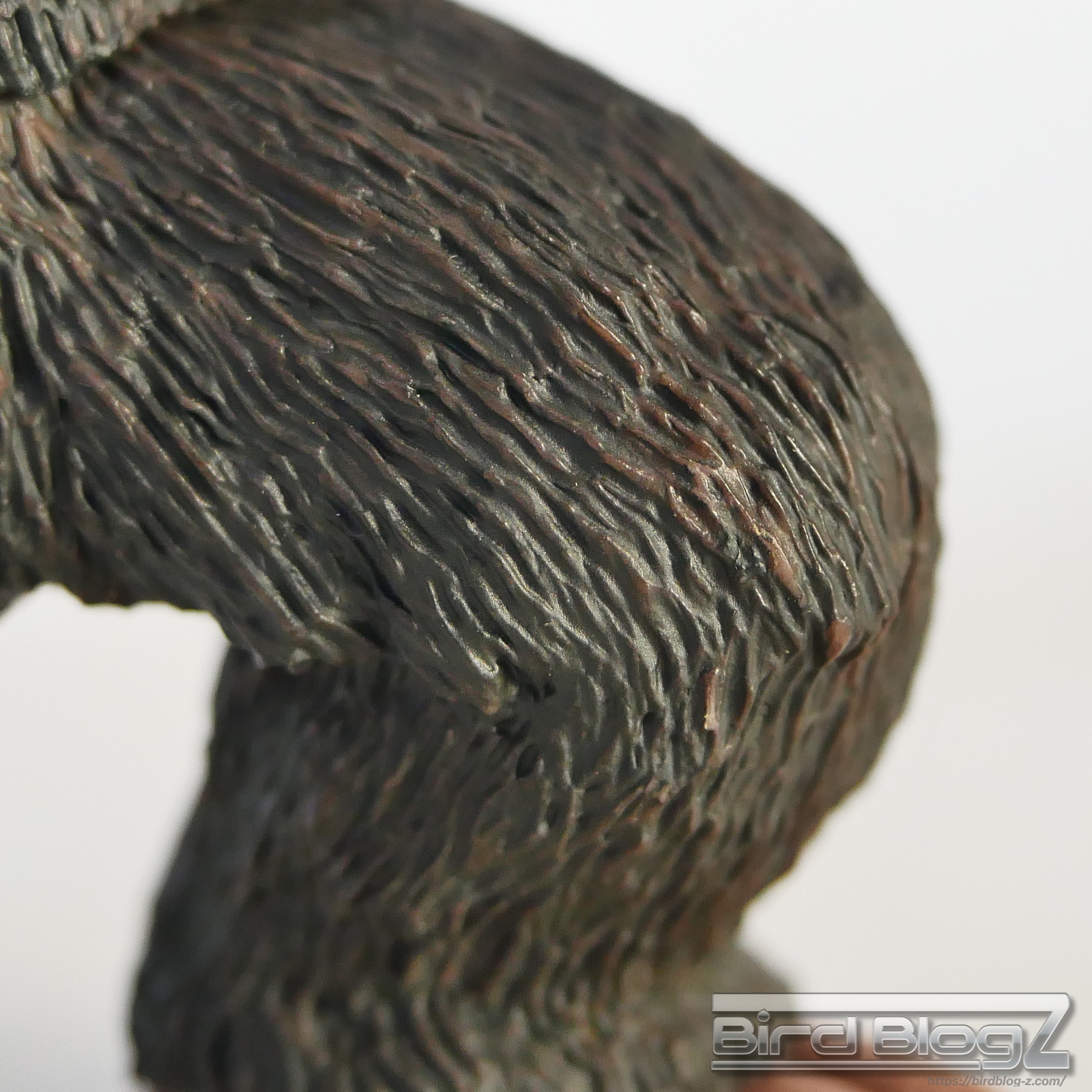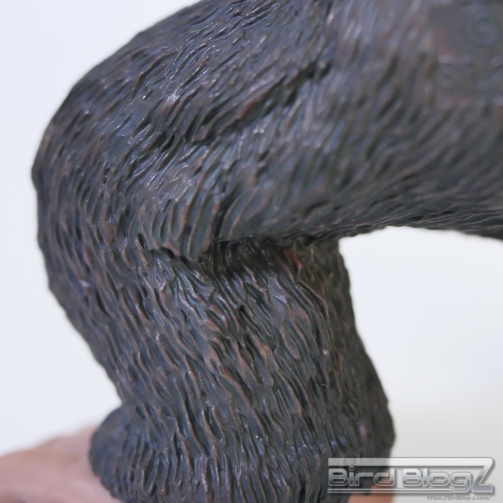表面の毛並みは細かく造形されており、単色ではなく茶色などの塗装も混じっているため、重厚感があります。