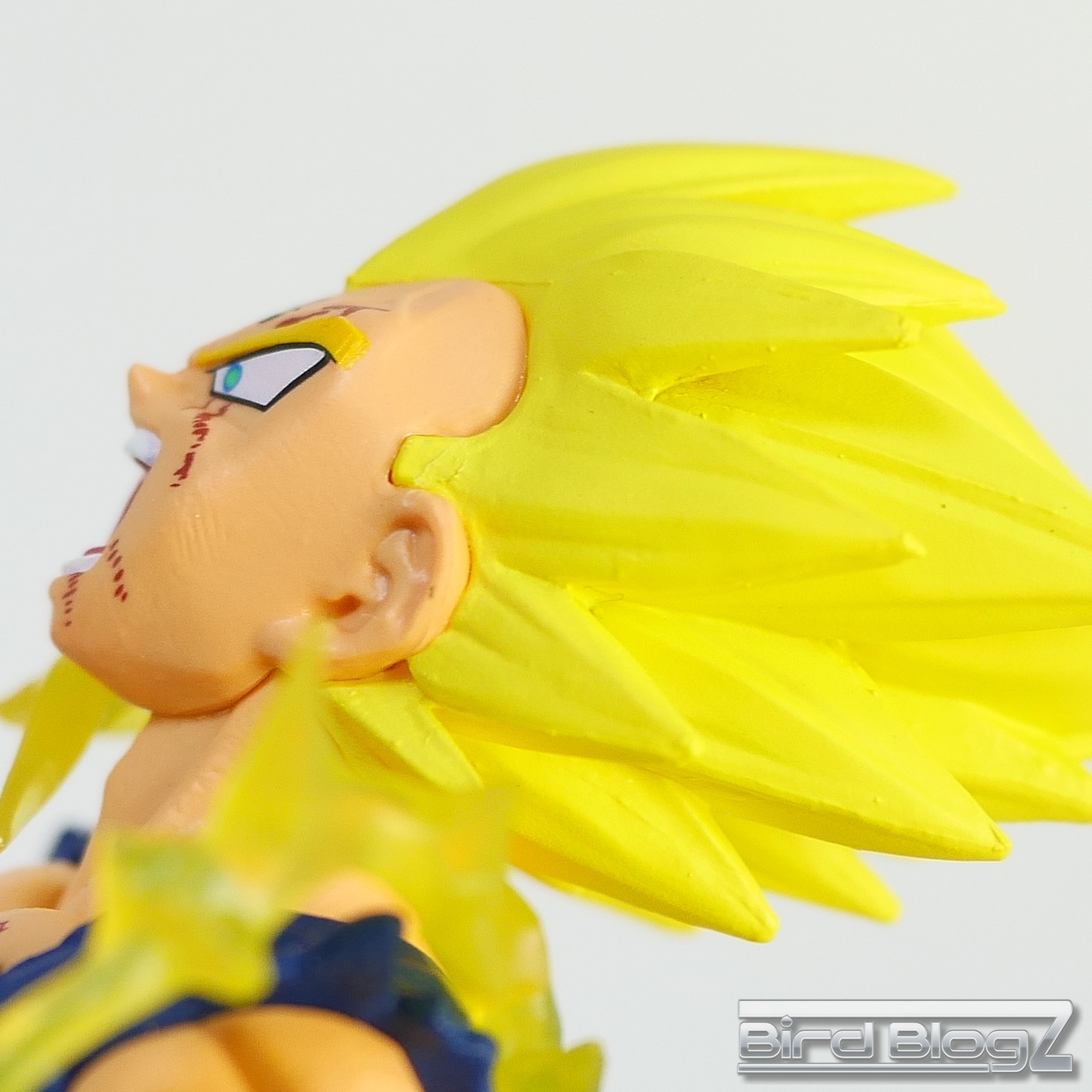 原作やアニメで顔を上にあげる眼を開けているか分かりにくい描写でしたがHistory Boxで眼を開ける姿だと監修されています。彩色塗装の多さやダメージ演出が入ることで迫力と激しい戦いの痕を感じれます。クリアエフェクトパーツにコストもかけてフィギュアーツZEROを彷彿する作品です。エフェクト台座は陰影塗装が入り煙の造形が単調にならないように彩色があります。戦闘服の道着が上半身が少し大きく下半身に入れ込むような造形です。サイズは小さいですが表情や彩色や原作に合わせた造形は満足度が高いです!