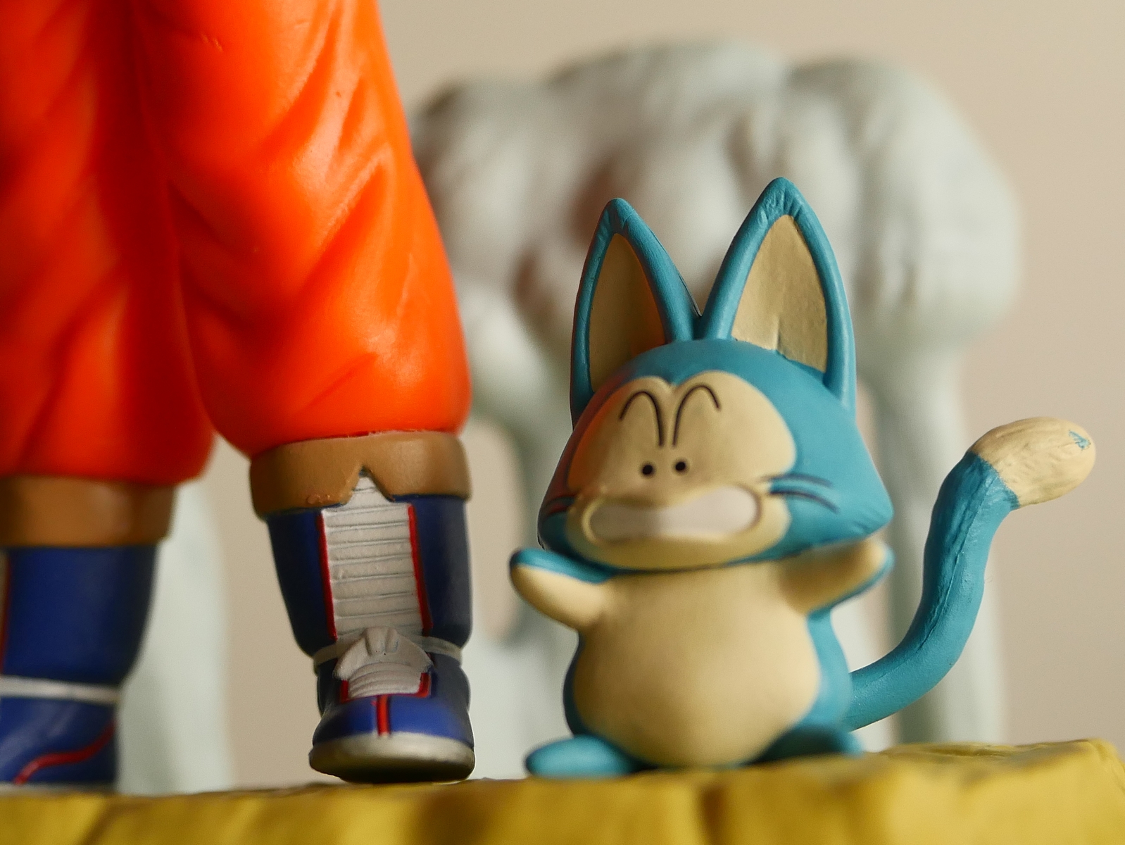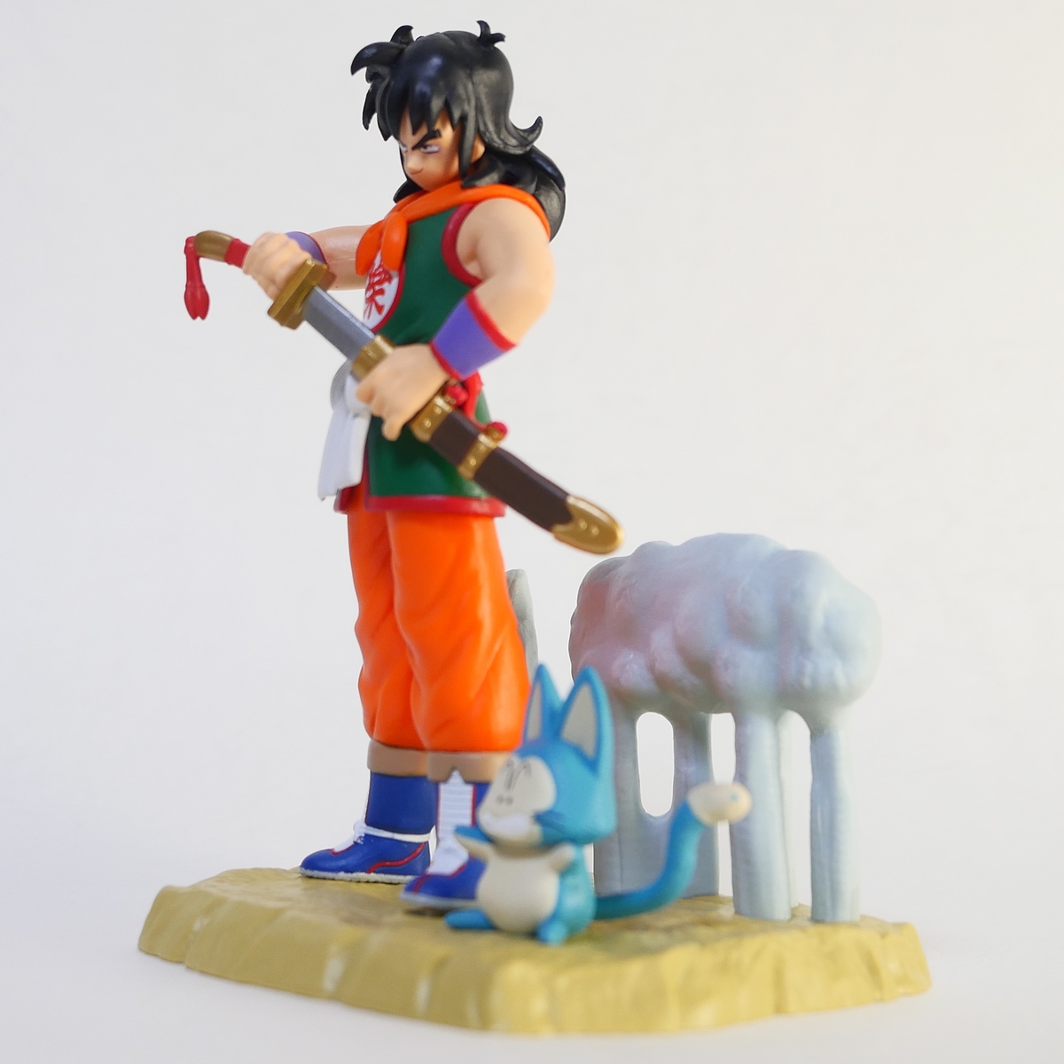 左右で目の開きが異なりドラゴンボール原作の表現があります。鞘から刀を抜刀する間の瞬間シーンを再現されています。腕の筋肉はやや丸みがありゴツゴツ感は弱く初期ヤムチャの筋肉造形です。プーアルは台座と一体型です。取外不可で固定式です。個体差はありますが彩色の塗り分けが荒い箇所が多く感じました。無印シーンのHistory Boxはコンパクトサイズで幅が省スペースで飾れるのはうれしいですね!