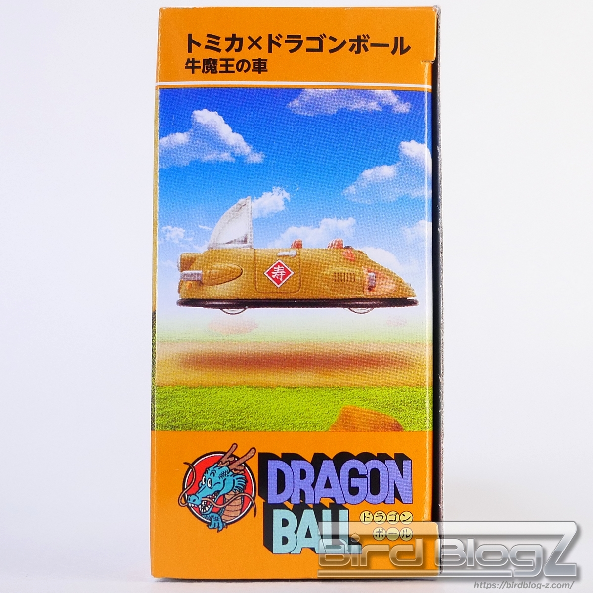 トミカ×ドラゴンボール(40周年記念) 第6弾はフライパン山で牛魔王がプレゼントしてくれたちょっと古いがはやいクルマが登場!側面パッケージはコミックスの絵が繋がるようなデザインです。