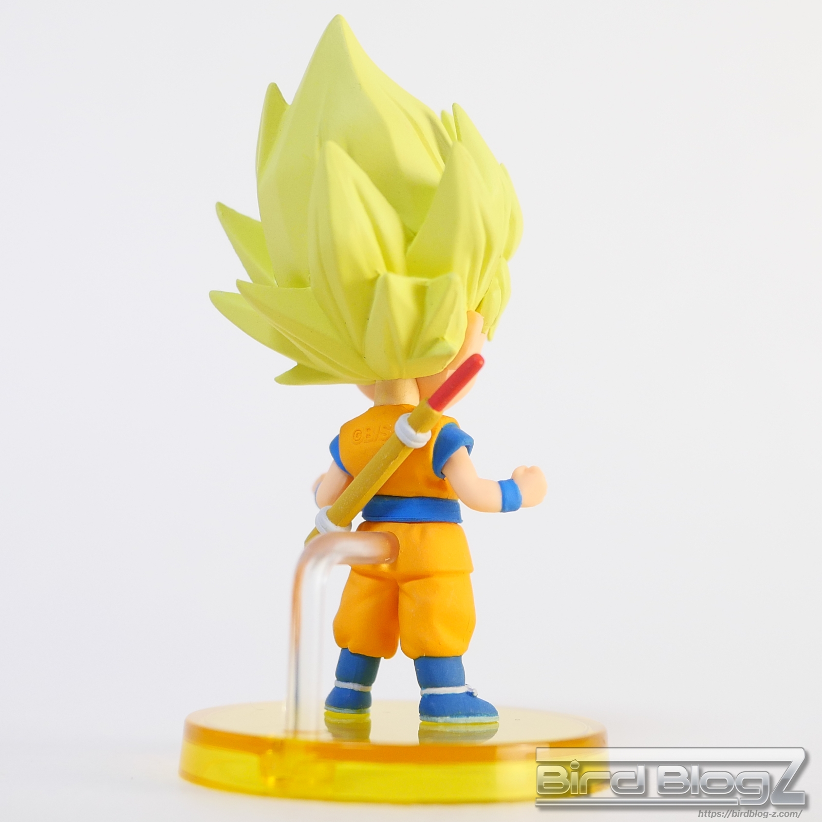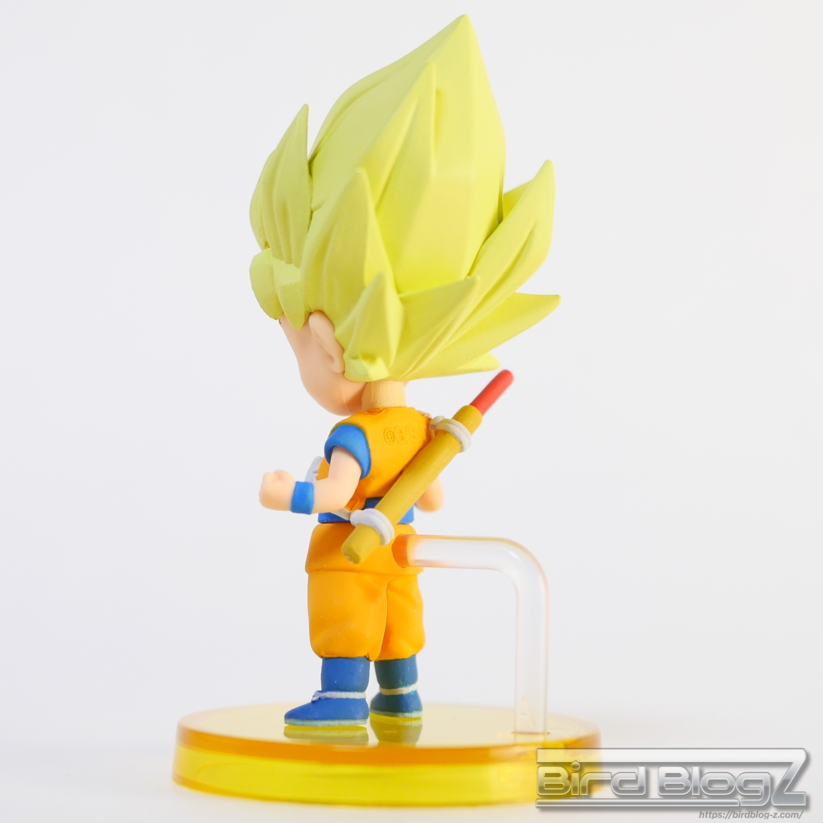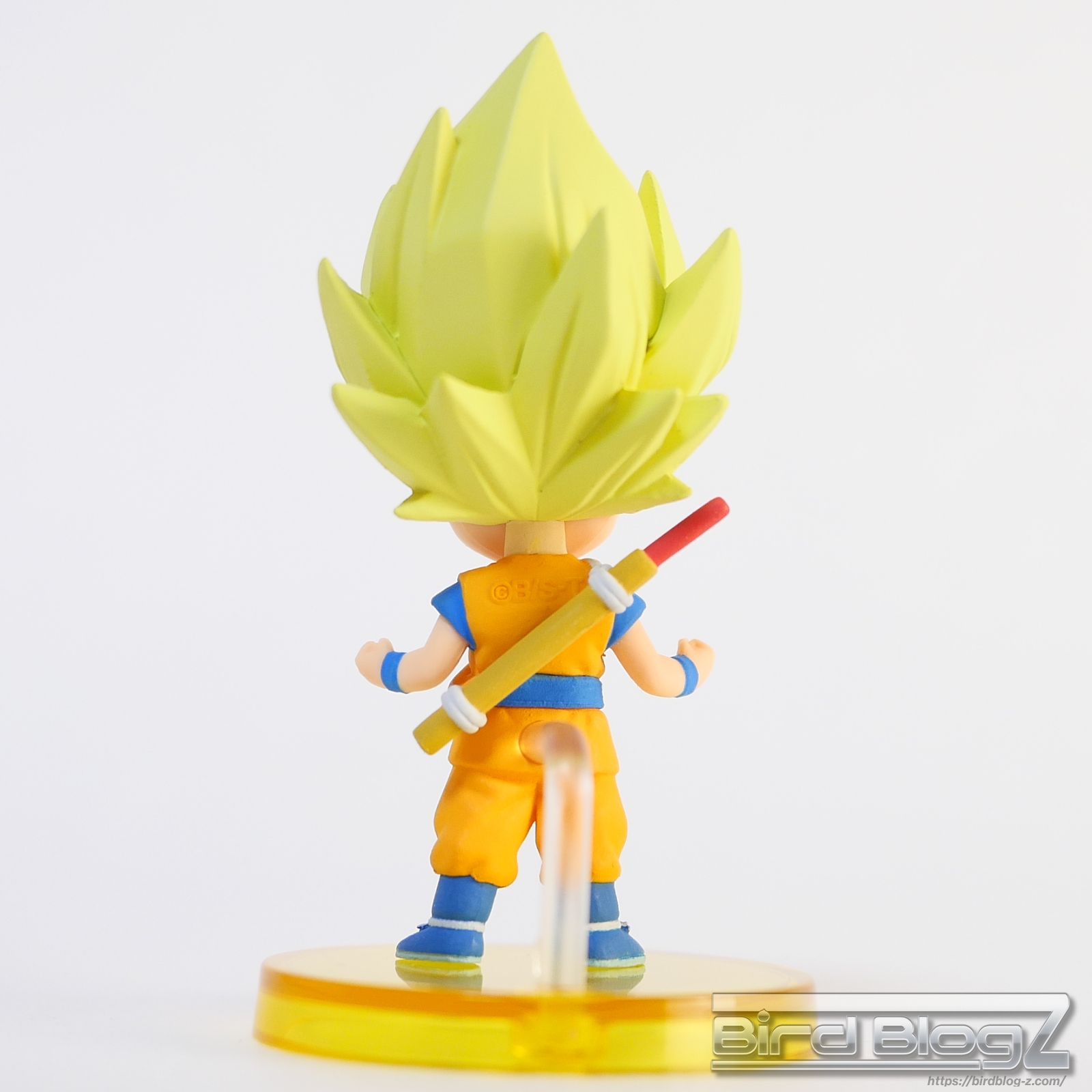 超サイヤ人の特徴である前髪1束のみ垂れるスタイルが再現されています。如意棒を背中に結ぶ紐やブーツ紐の結びが造形されています。