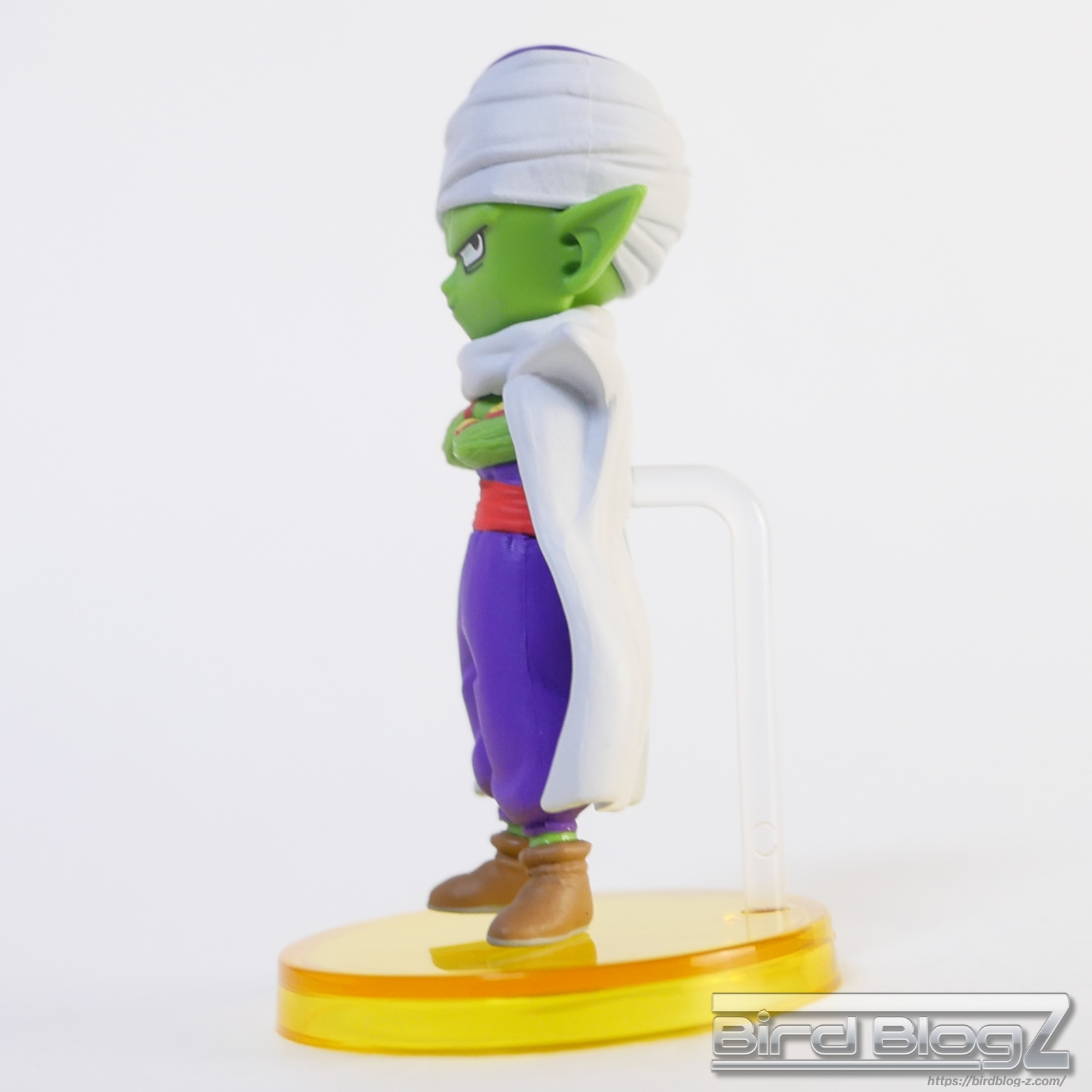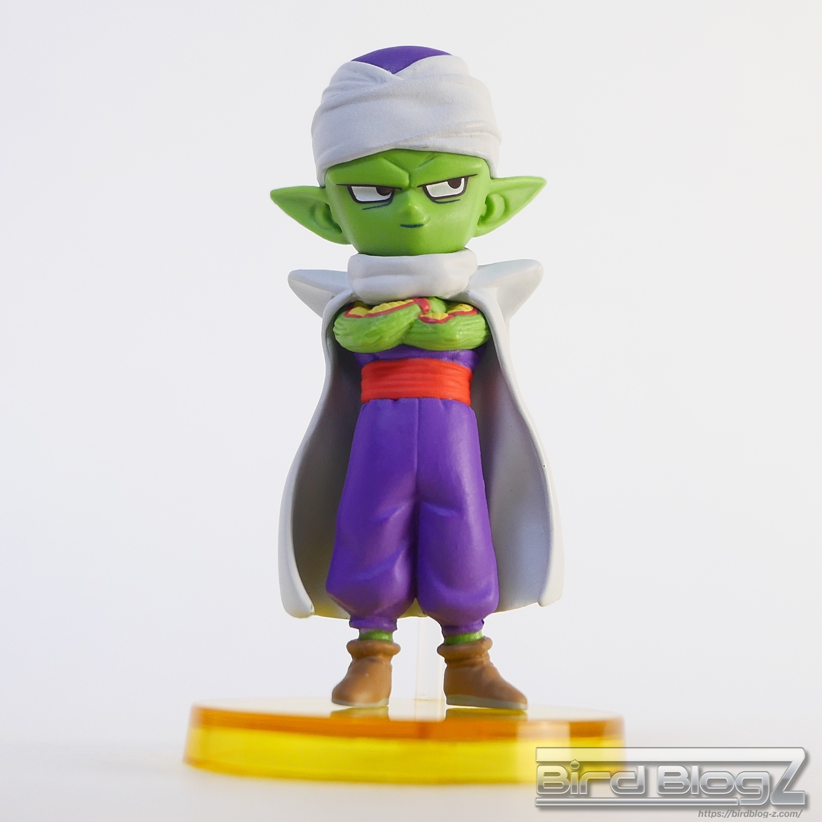 緩やかな眉と丸みある白眼が小さくなりかわいくなったピッコロ(ミニ)らしさがあります。フェイスラインも丸みがあります。腕も模様は細かく彩色されています。