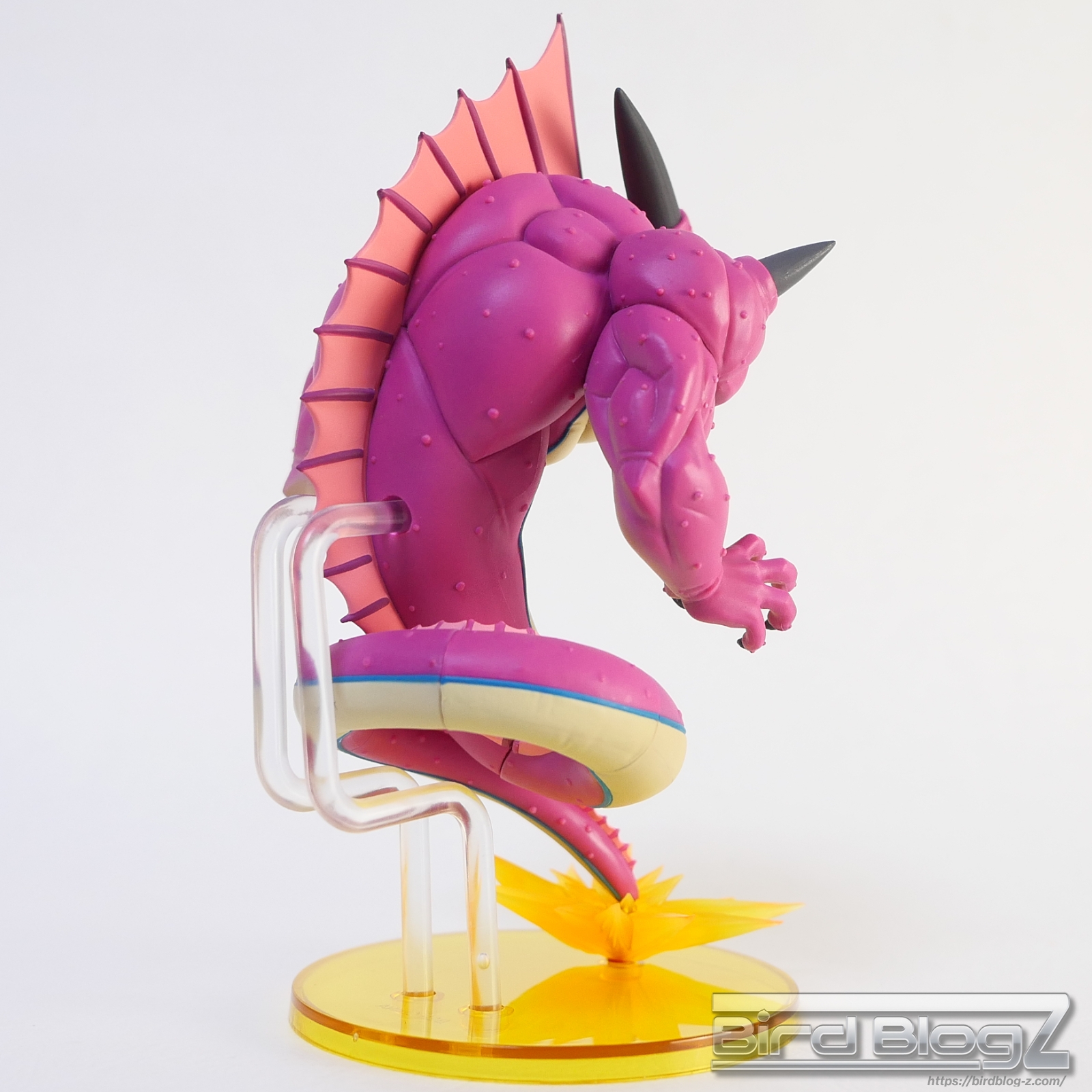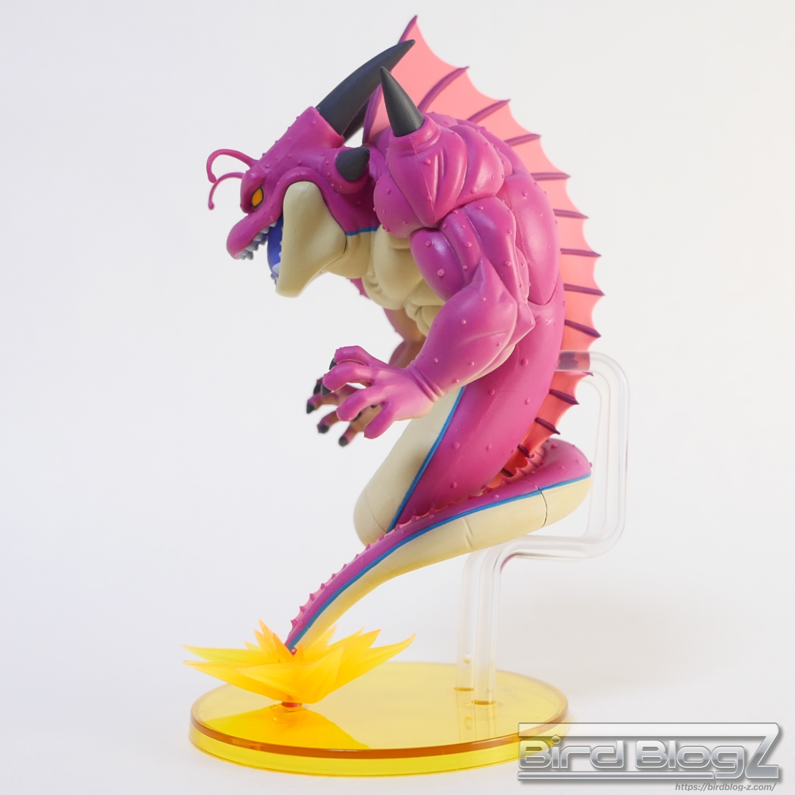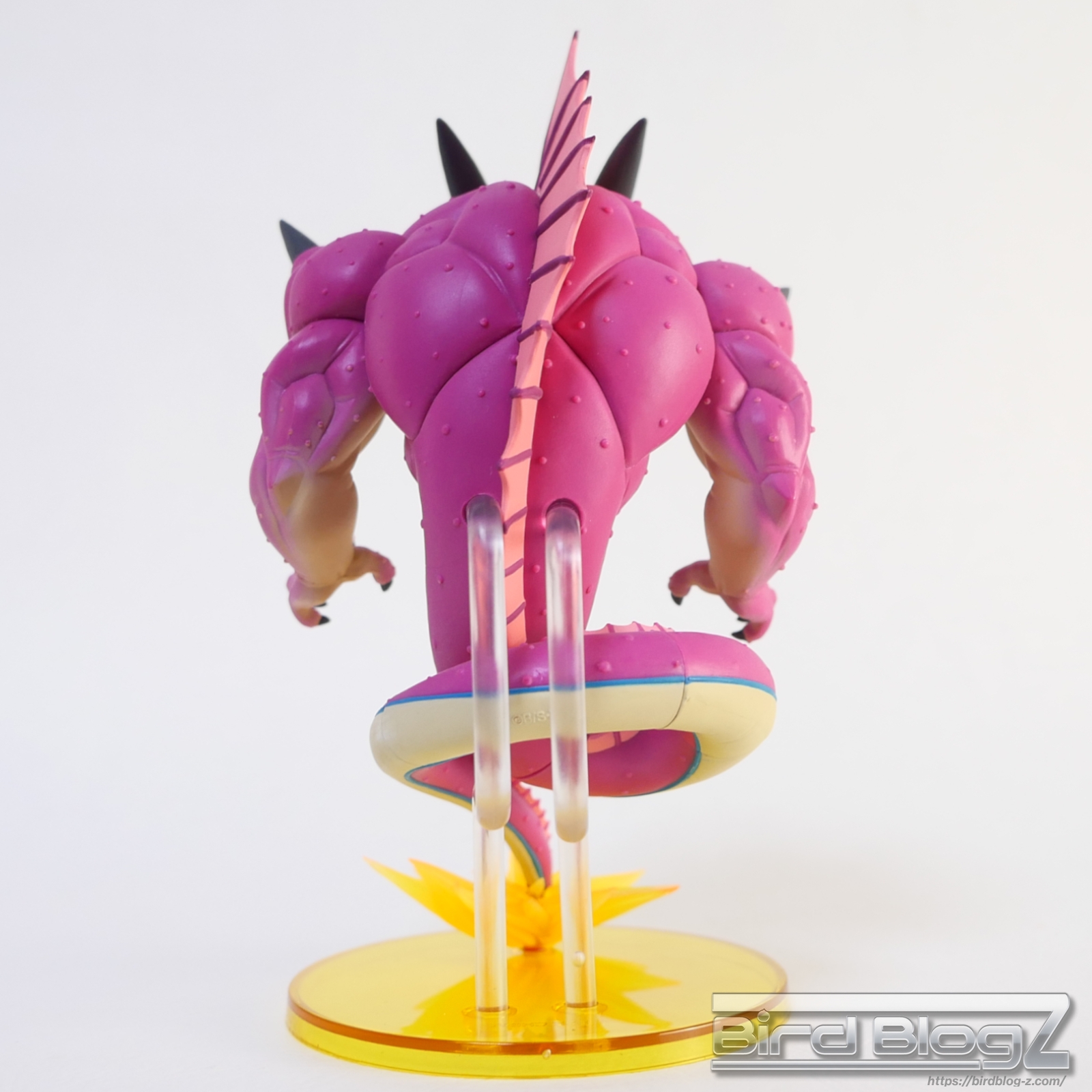 角が短くやや丸みがあり鼻先も丸みがあります。腕の内側と外側でグラデーション彩色があります。MEGAワーコレ神龍とアドバージポルンガ、DAIMAポルンガを並べると同サイズです。アドバージポルンガと並べるとDAIMAポルンガはすっきりとしたフォルムになっていることがわかります。