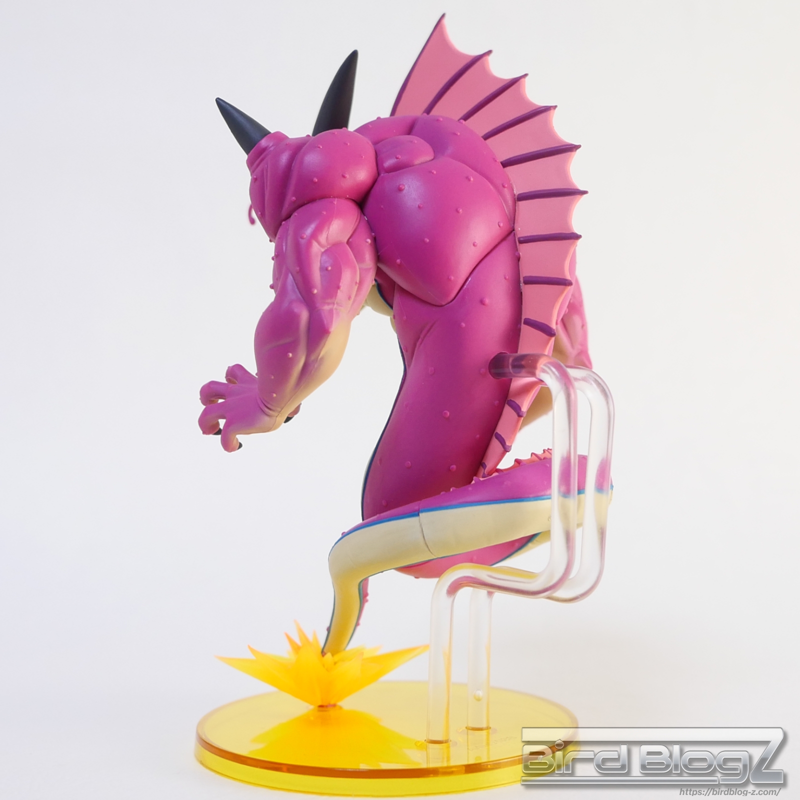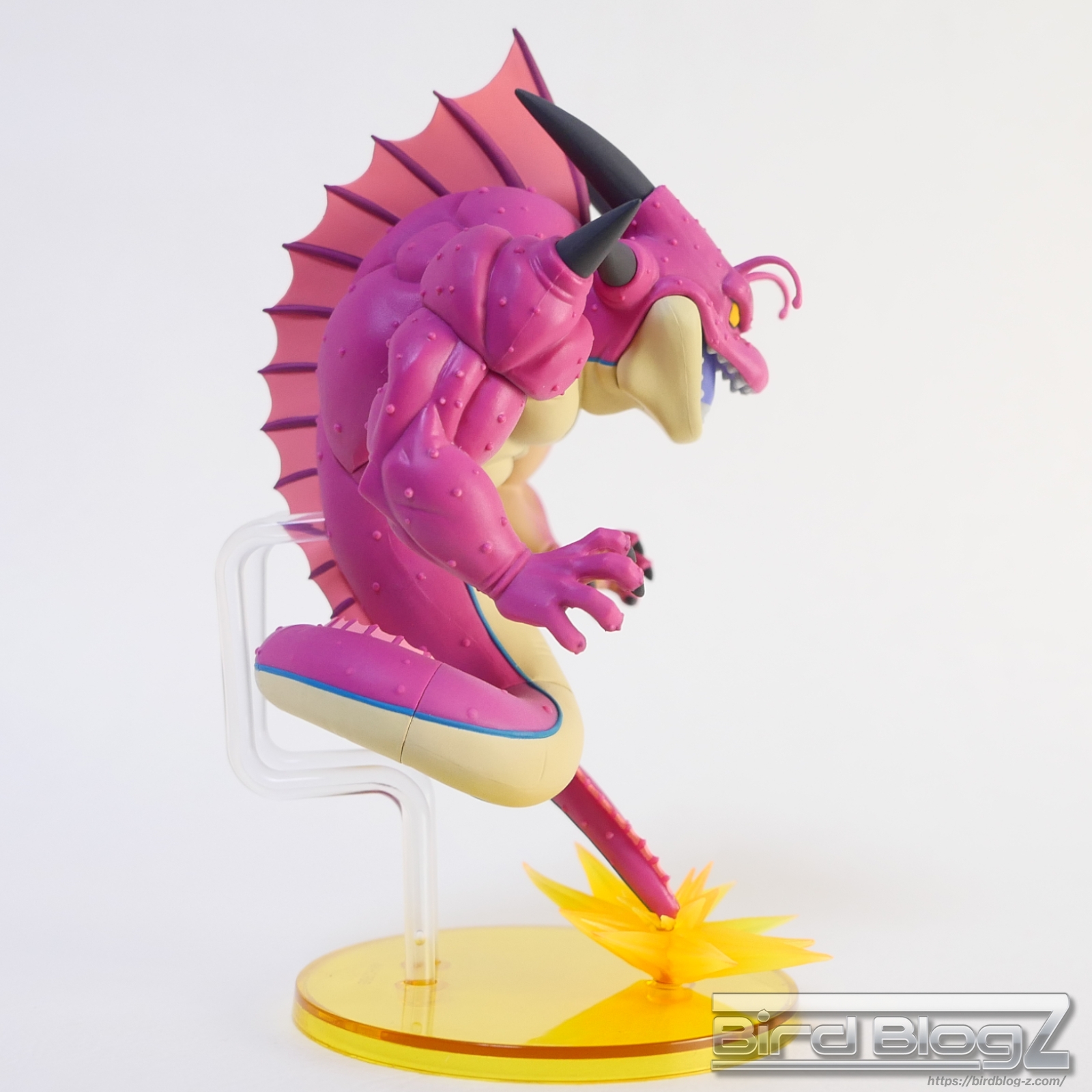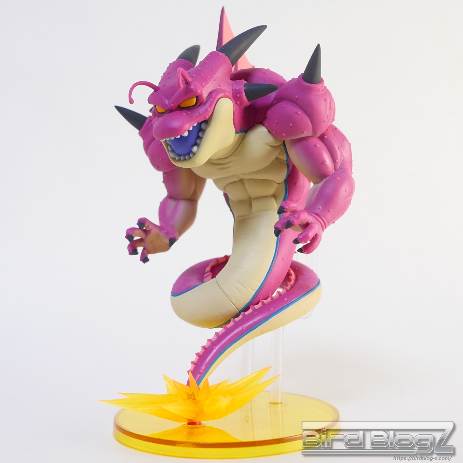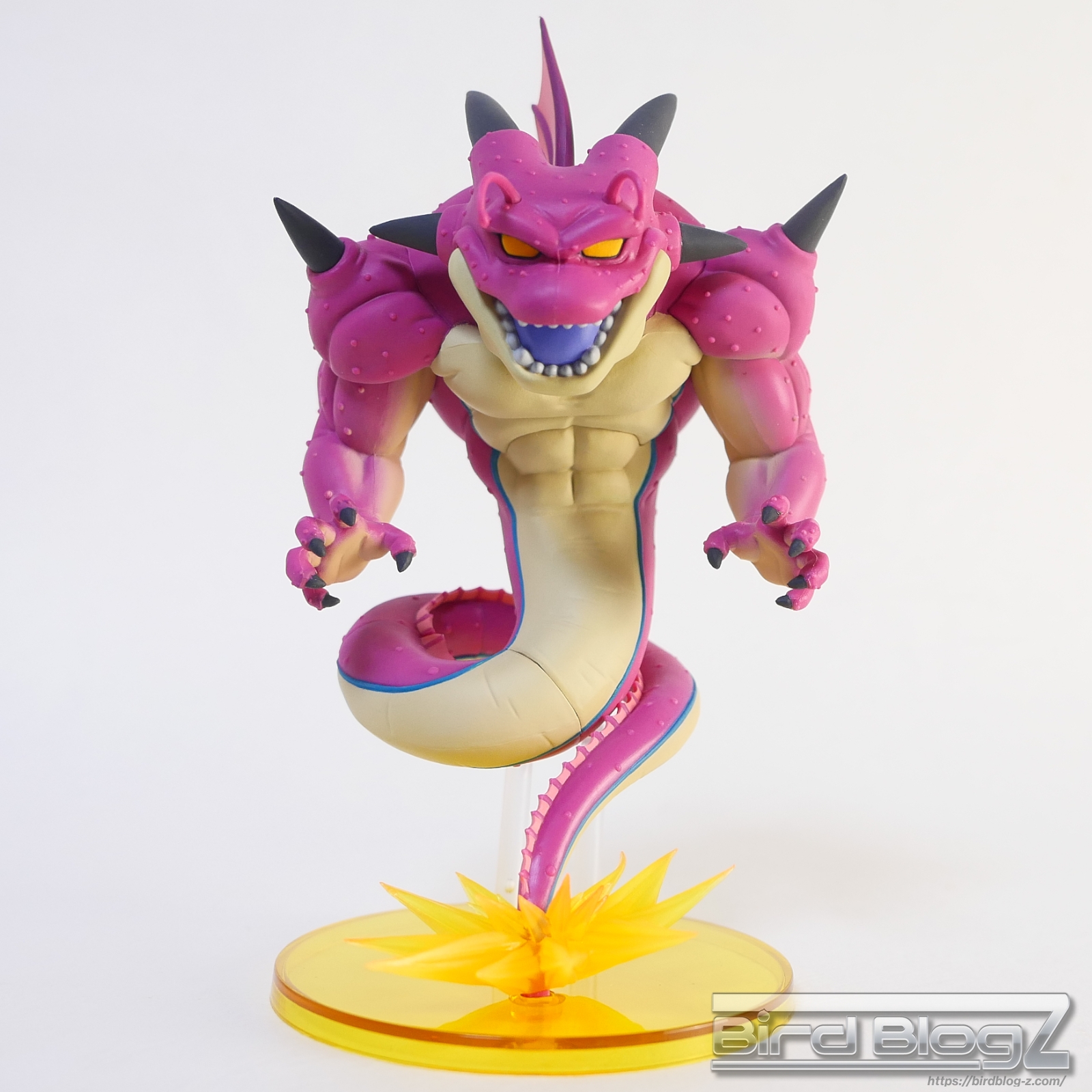 角が短くやや丸みがあり鼻先も丸みがあります。腕の内側と外側でグラデーション彩色があります。MEGAワーコレ神龍とアドバージポルンガ、DAIMAポルンガを並べると同サイズです。アドバージポルンガと並べるとDAIMAポルンガはすっきりとしたフォルムになっていることがわかります。