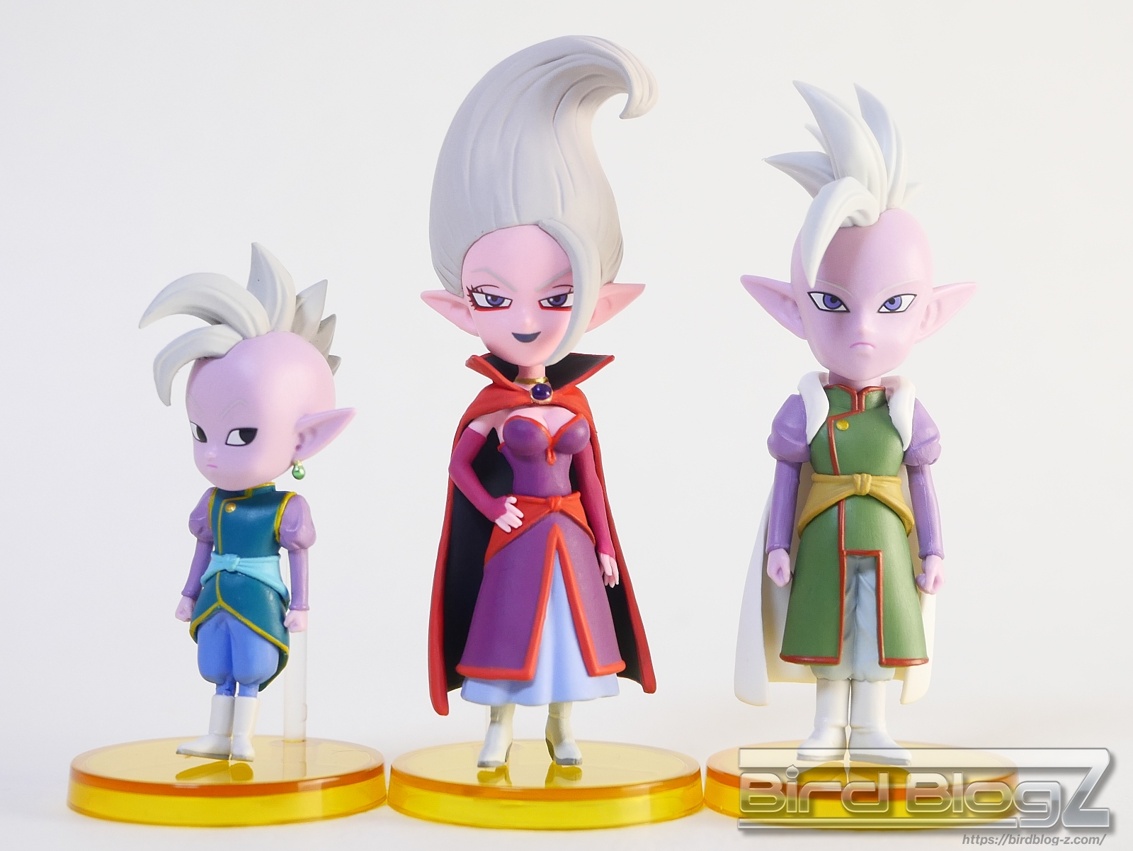 同じ樹から生まれた界王神 シン(ナハレ)とデゲスの姉。ソフトクリームのような髪型は後ろからみてもアリンスとすぐにわかる特徴があります。指は細かく造形してあります。アニメキャラクター紹介と同ポーズです。